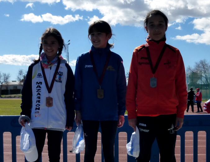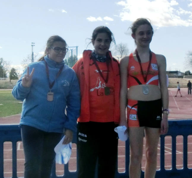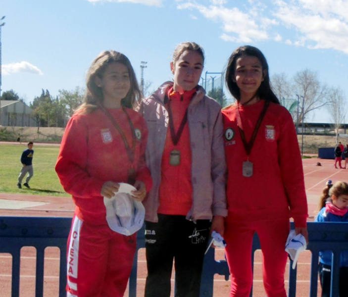 En la misma mañana también subieron al pódium Carmen Martínez y Alba López. Carmen Martínez era Subcampeona Regional Alevín de 1.000 m., tras acabar esta prueba en segunda posición parando el crono en 3:52.03. Alba López por su lado conseguía saltar 1,34 m. en la prueba de salto de altura, marca que le daba acceso a la medalla de bronce infantil femenino en esta prueba, por otro lado Alba también disputó el lanzamiento de peso infantil, prueba en la que quedó en quinta posición.