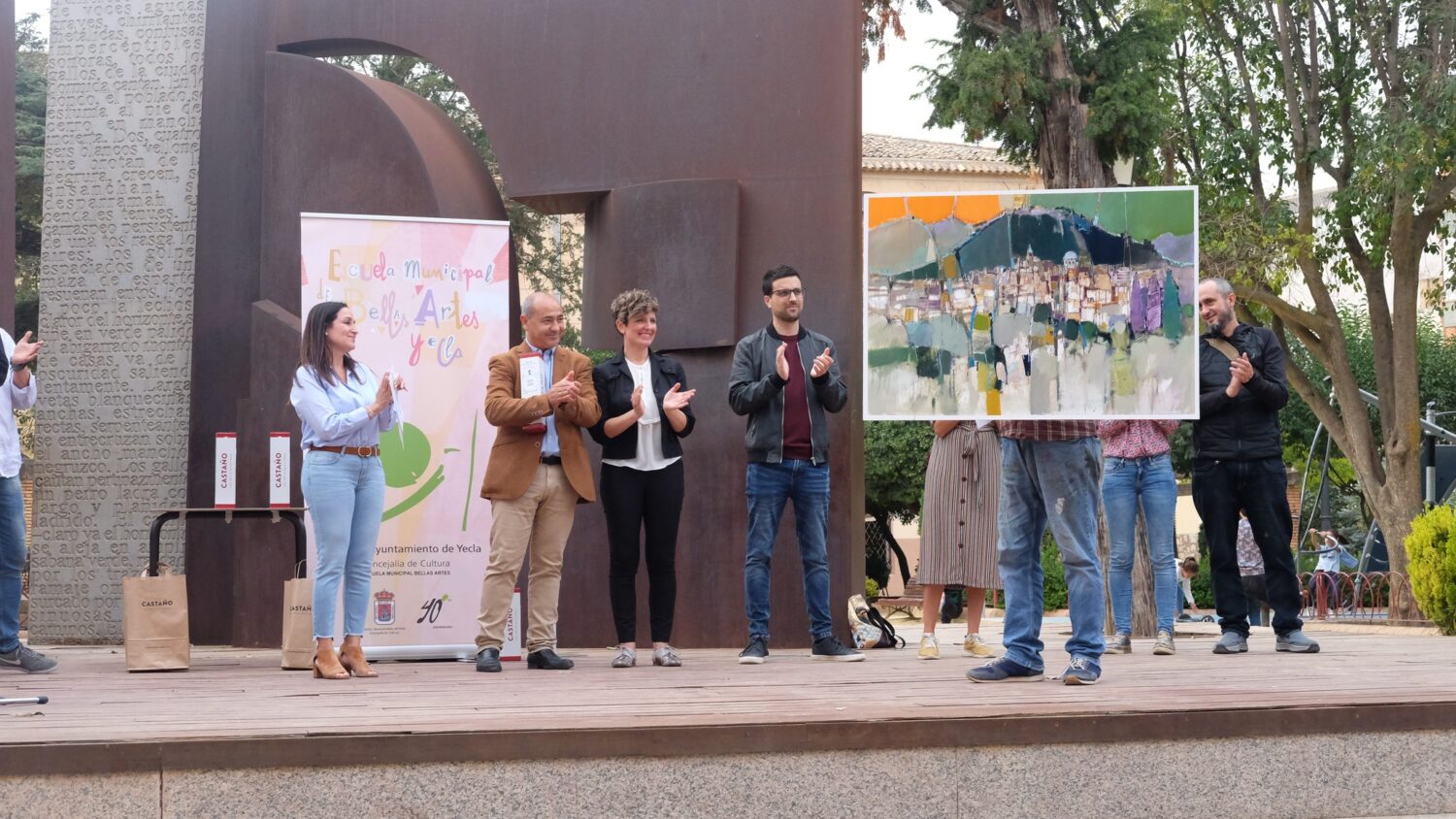 El gallego Andrés Gabarres ha conseguido el primer premio o premio «Alcaldesa de Yecla» en el certamen de pintura al aire libre celebrado el pasado sábado. La obra, realizada desde la parte posterior de la Iglesia Vieja recoge una magnífica panorámica. Realizado con técnica mixta, el cuadro mide 80×100 cm.