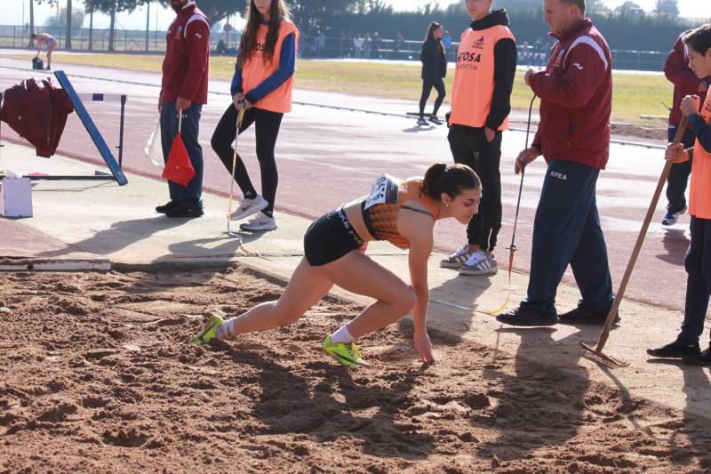 Por su parte, Nerea Artes participó en varias pruebas técnicas: 60m vallas (10.23), salto de altura (1,30m), longitud (4,88m) y peso (9,30m), mostrando un gran potencial en disciplinas múltiples.