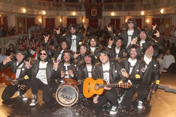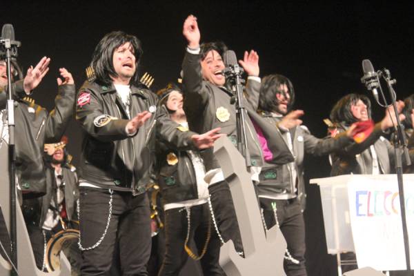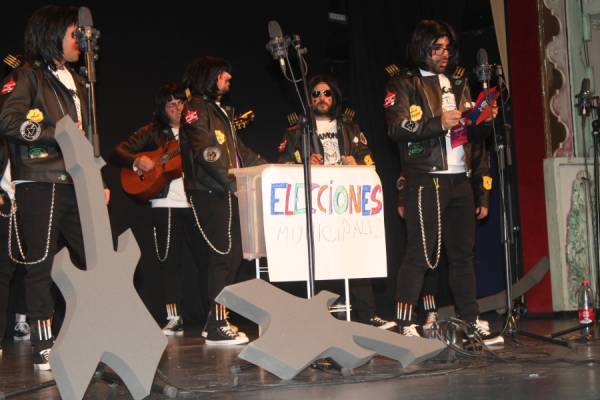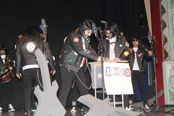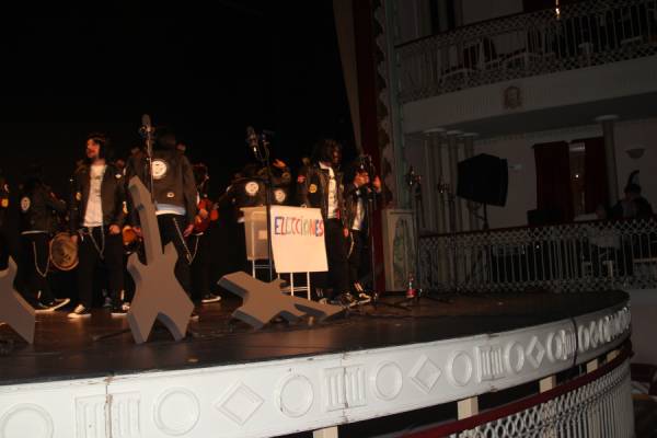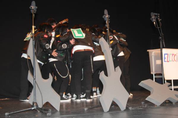La noche estuvo amenizada por la actuación de la peña chirigotera ACHY, que dedicó una parte importante de su espectáculo a las próximas elecciones municipales de mayo. Los chirigoteros analizaron a todos los candidatos políticos locales, especialmente a Cristóbal Ruiz, y lograron sacar una sonrisa al público con su humor satírico.No defraudaron los componentes de esta peña que año tras año traen su humor a la gala con actuaciones que se centran, la mayoría de veces, en aspectos y personajes de la propia localidad de Yecla lo que le da un valor mayor a lo que hacen.A la alcaldesa, Remedios Lajara, también le dedicaron unos minutos de su arte y a también a su marido, “el canuto”. En nuestro canal de Facebook está colgada la actuación de este grupo.humor de achy