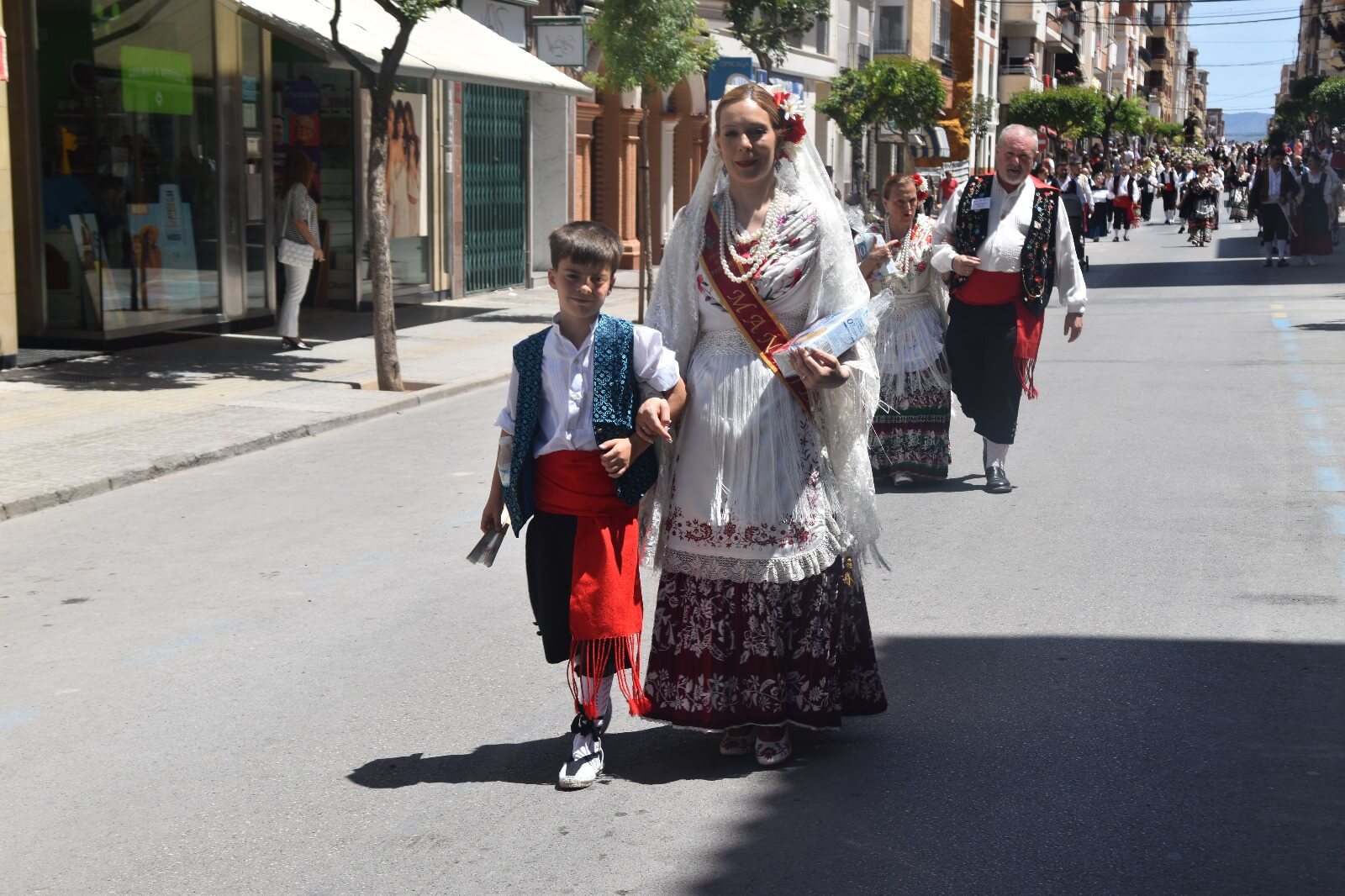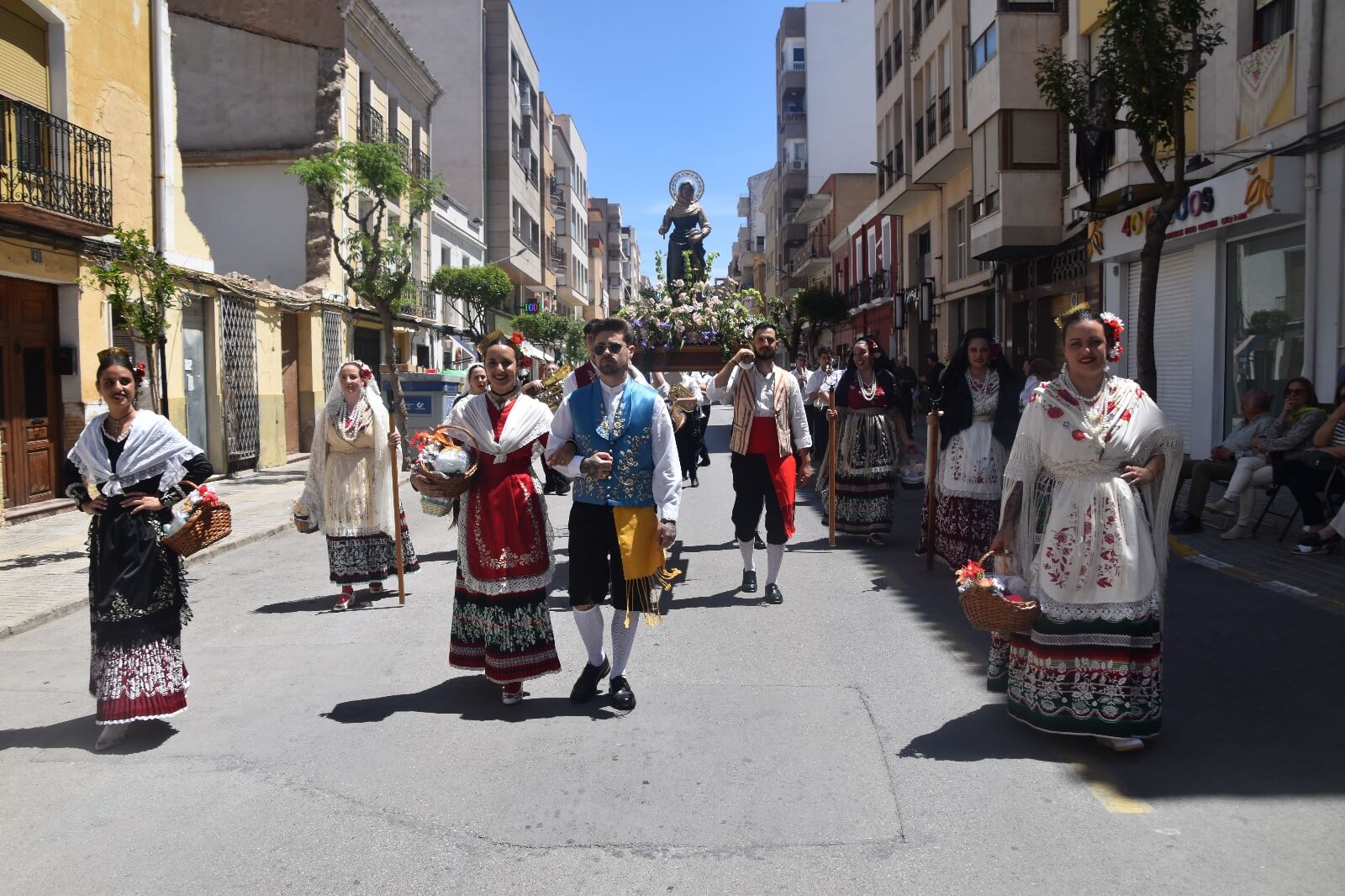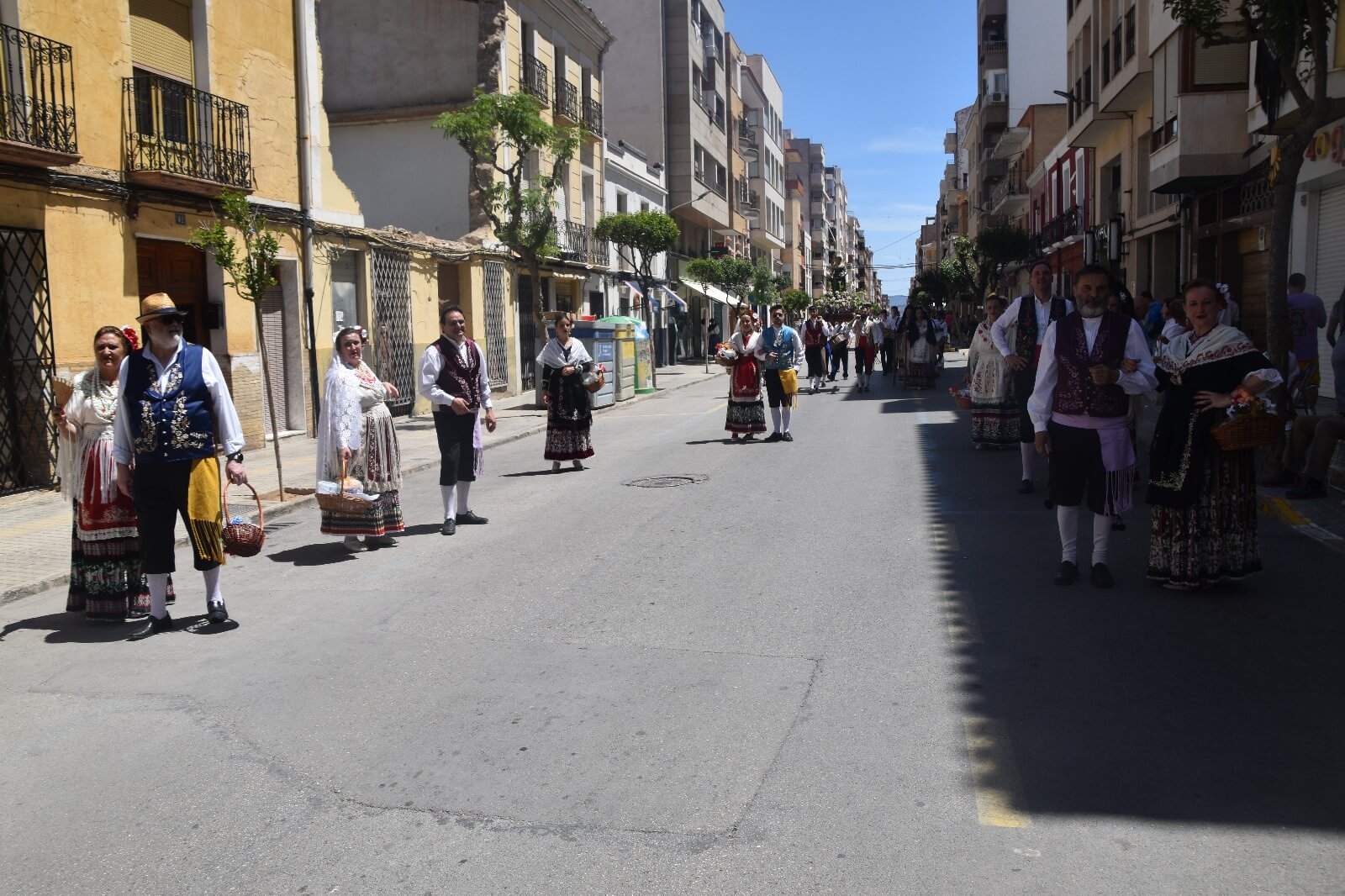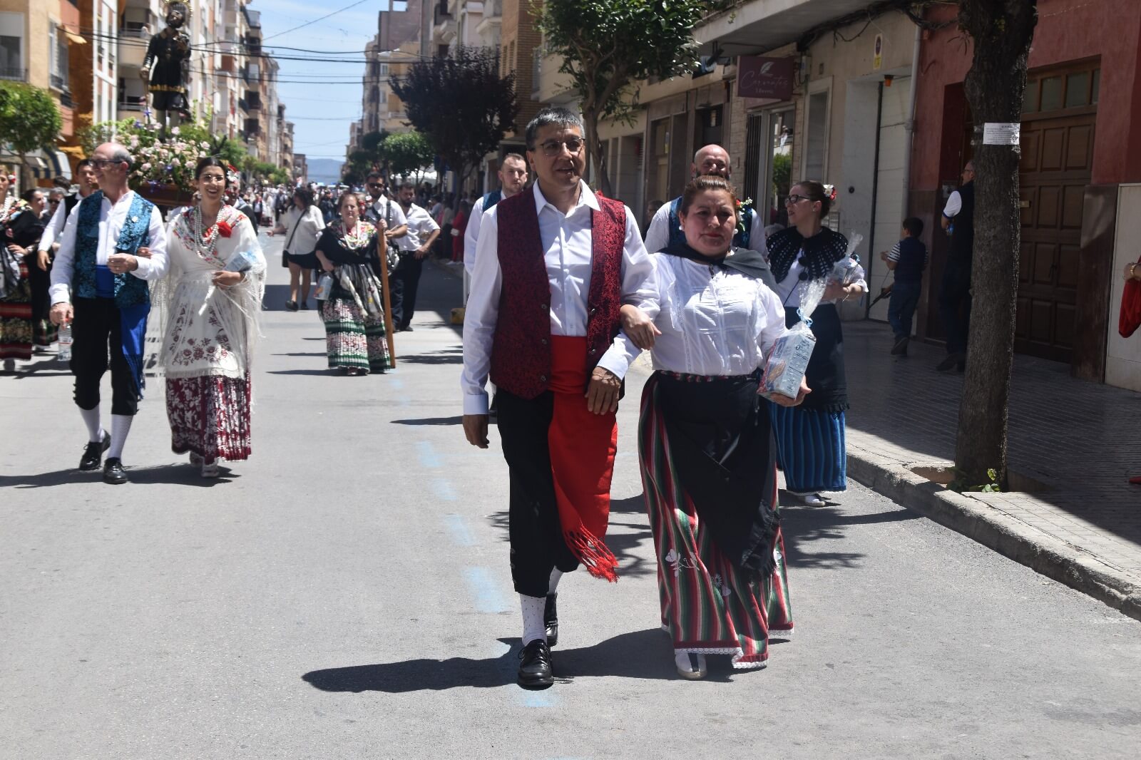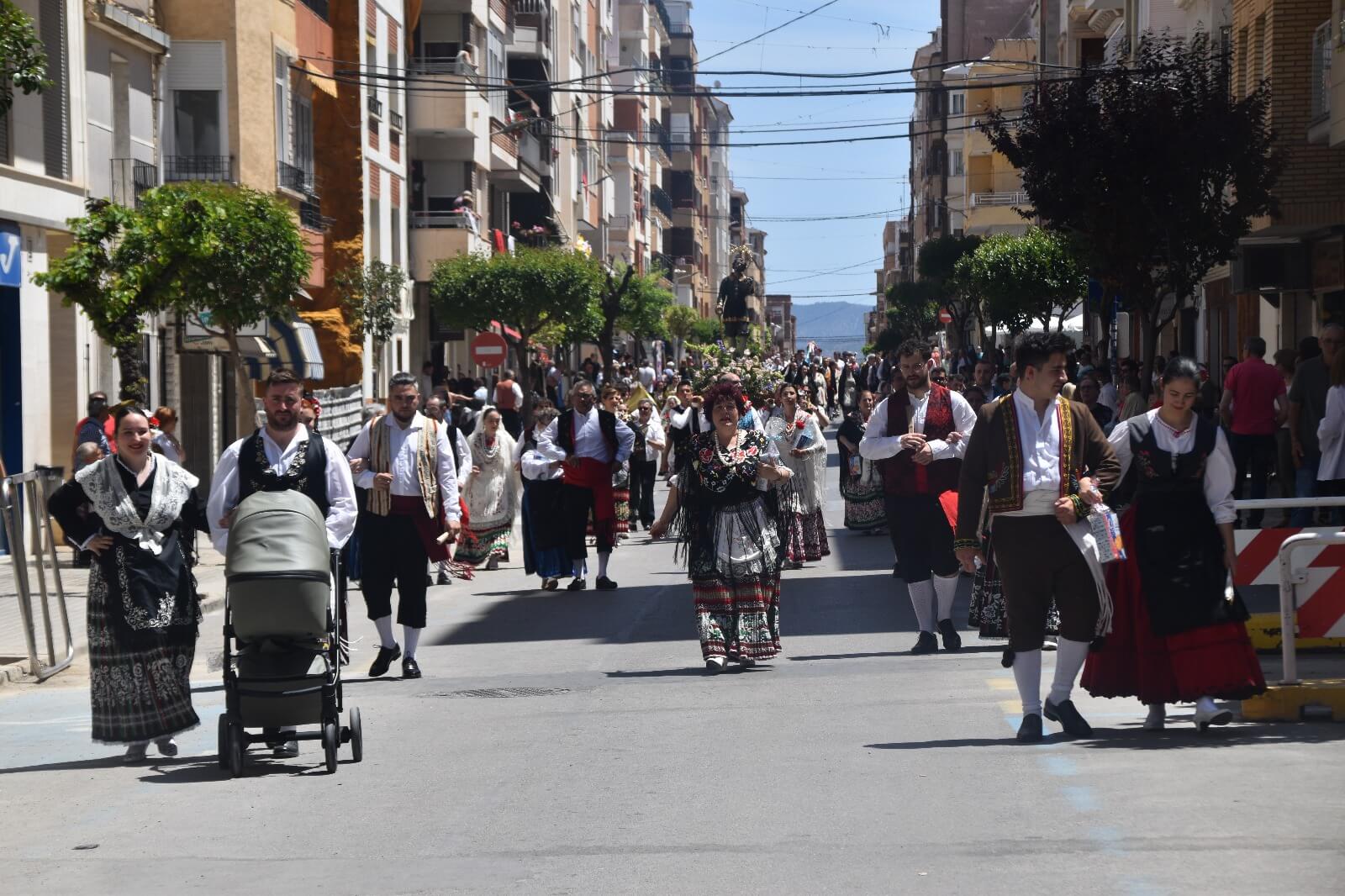 El primer fin de semana grande de las Fiestas de San Isidro en Yecla con los santos de los labradores en procesión. Las celebraciones han dado inicio a sus actos centrales mirando ya a la multitudinaria cabalgata que se llevará a cabo este próximo sábado. El día de San Isidro Labrador fue conmemorado en la ciudad con una vibrante procesión el domingo pasado, atrayendo a miles de vecinos a las calles céntricas para presenciar el desfile.La procesión se puso en marcha después de la misa labradora, celebrada a las 11 de la mañana en la basílica de la Purísima. Encabezada por las imágenes de los santos San Isidro y Santa María de la Cabeza, llevadas en andas, recorrió las calles del centro de Yecla. Un total de 65 peñas participaron en esta extensa procesión, todas ataviadas con trajes típicos de labradores y portando productos de limpieza que luego fueron entregados al asilo de ancianos de la ciudad, en un gesto solidario que se ha vuelto habitual en los últimos años.