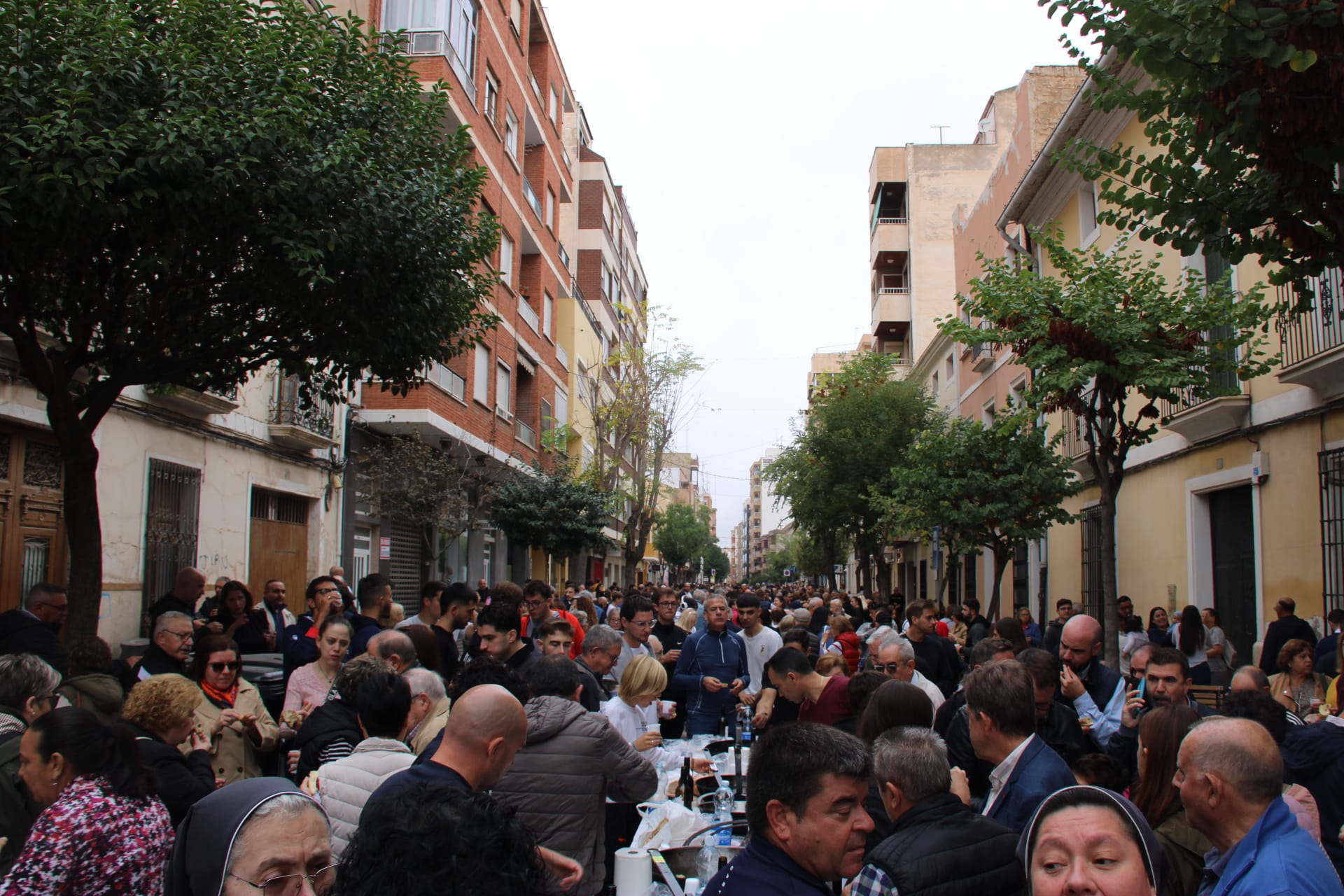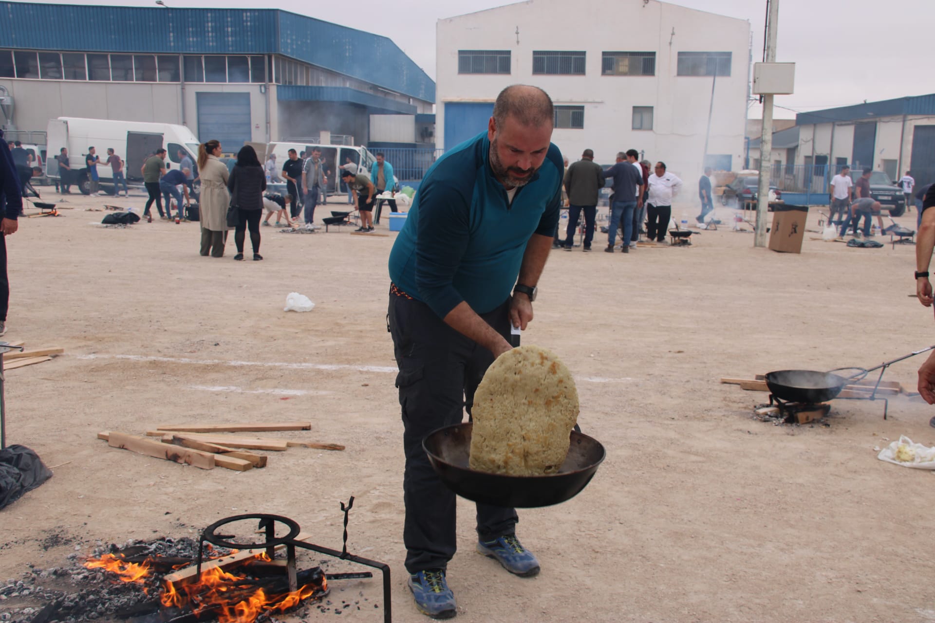 Desde primera hora de la mañana, cerca de 200 sartenes fueron cocinadas por voluntarios y posteriormente repartidas en más de 100 mesas distribuidas a lo largo de la calle. Los asistentes pudieron degustar este típico plato elaborado con harina, agua, aceite y ajos, acompañado de pan, encurtidos, vino y mandarinas como postre.