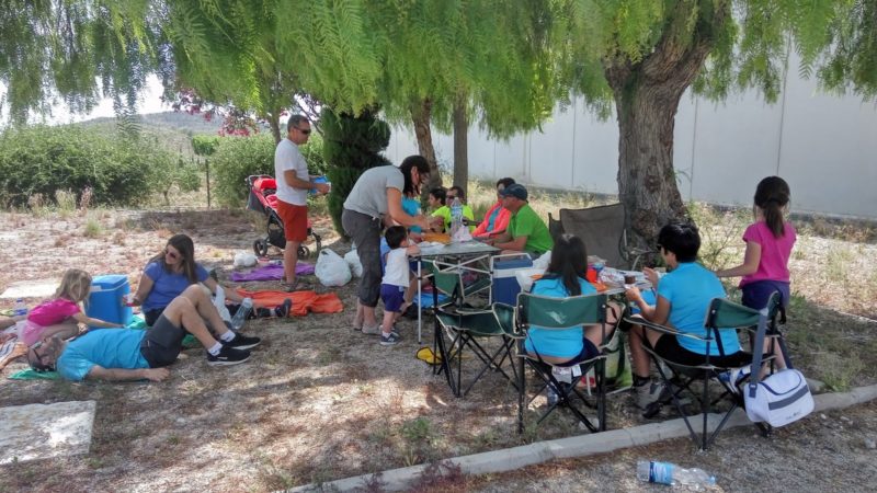 El paseo comenzó con un pequeño, tranquilo y refrescante recorrido por la zona, en la que tanto niños como adultos disfrutaron del precioso entorno que les rodeaba. Tras ese paseo, el que quiso se quedó a comer, y como se puede comprobar, a relajarse debajo de la sombra de los árboles.