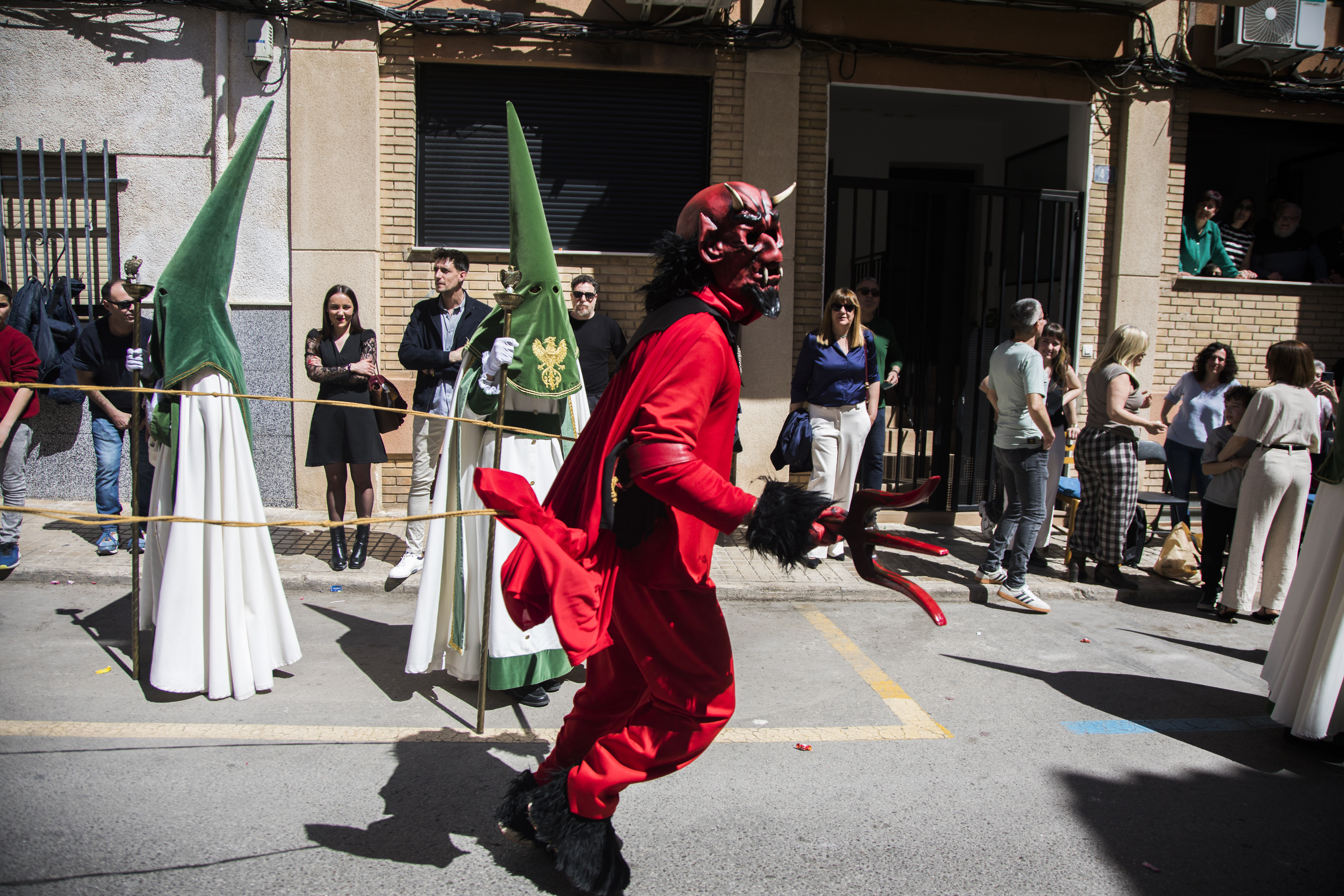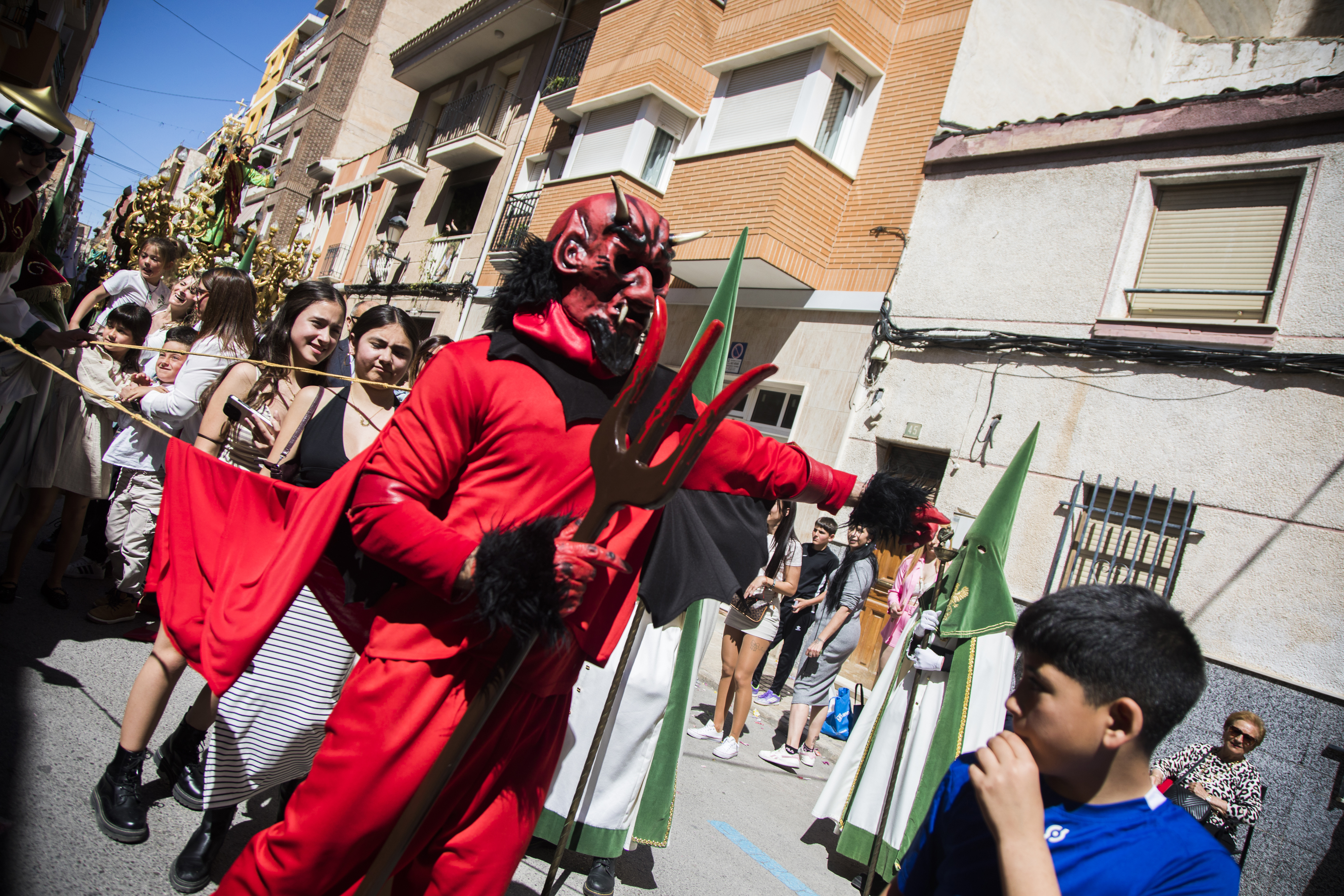 Yecla cerró ayer la Semana Santa con la Procesión del Resucitado, el Acto del Encuentro y la suelta del tradicional y único diablico. La última procesión salió a las 9.30 horas desde la carpa del Arco del Niño. Recorrió Quevedo, Epifanio Ibáñez y Plaza Mayor antes del encuentro de las 11.00 horas. Las calles se llenaron de gente, color y alegría para recibir a Jesús Resucitado.