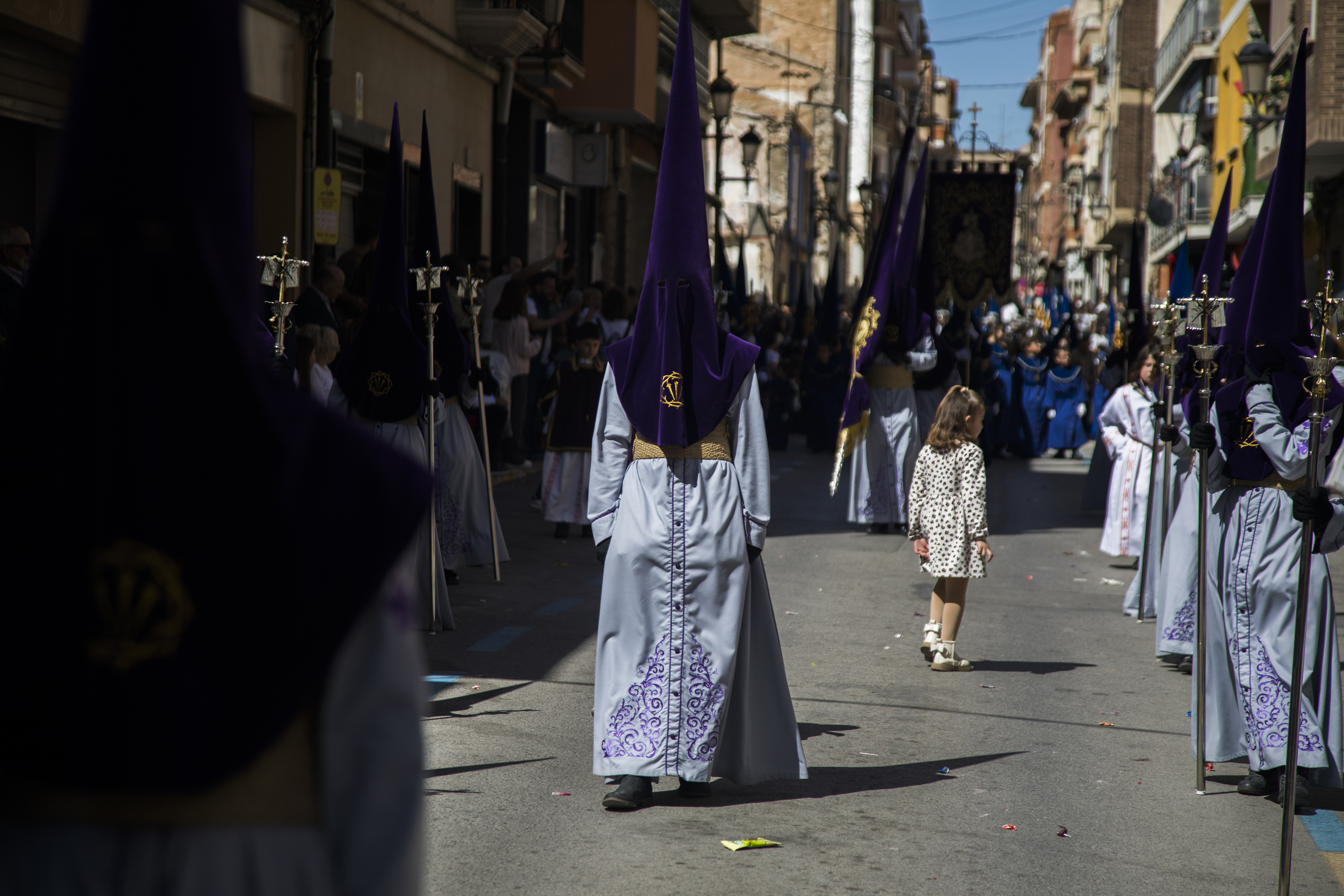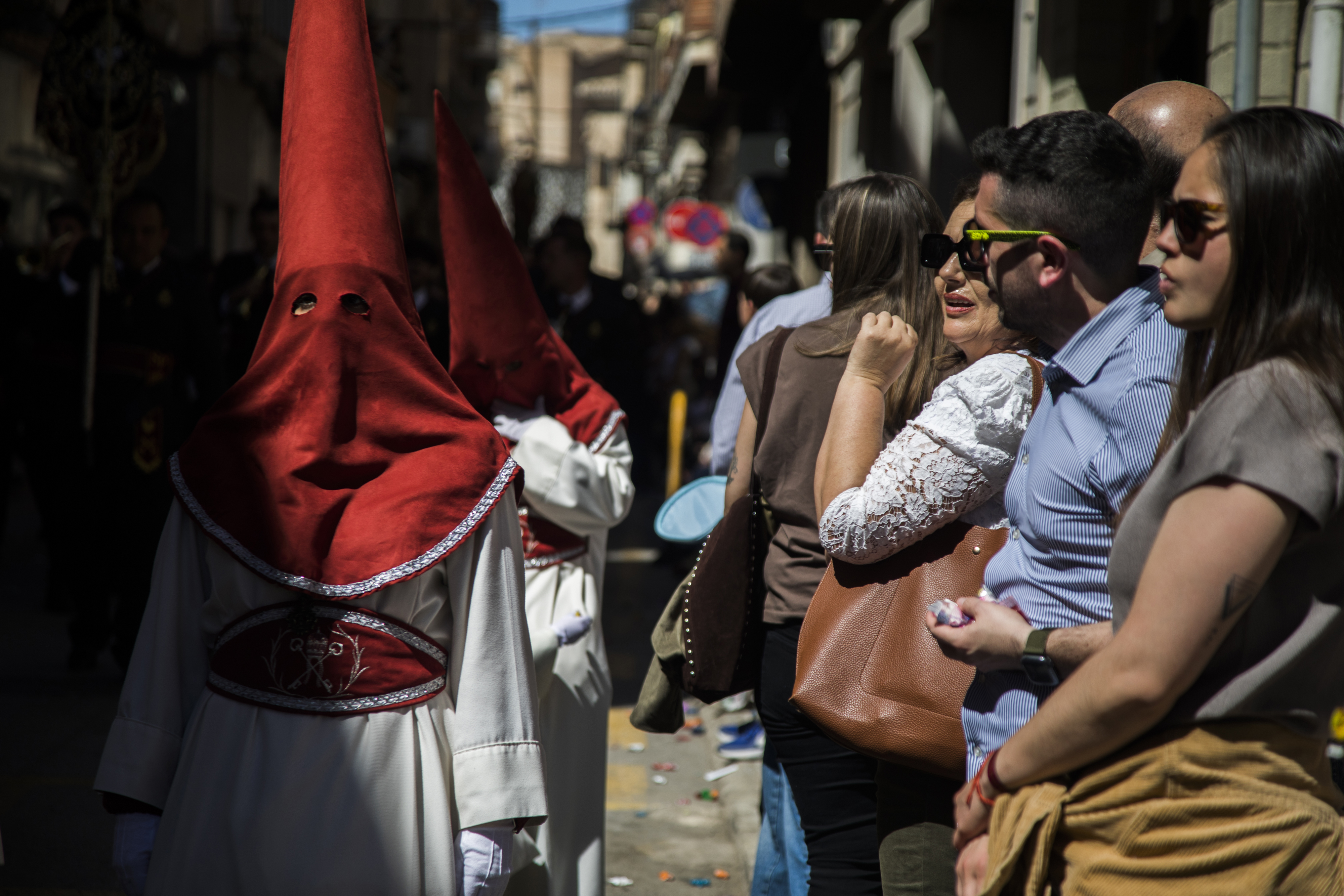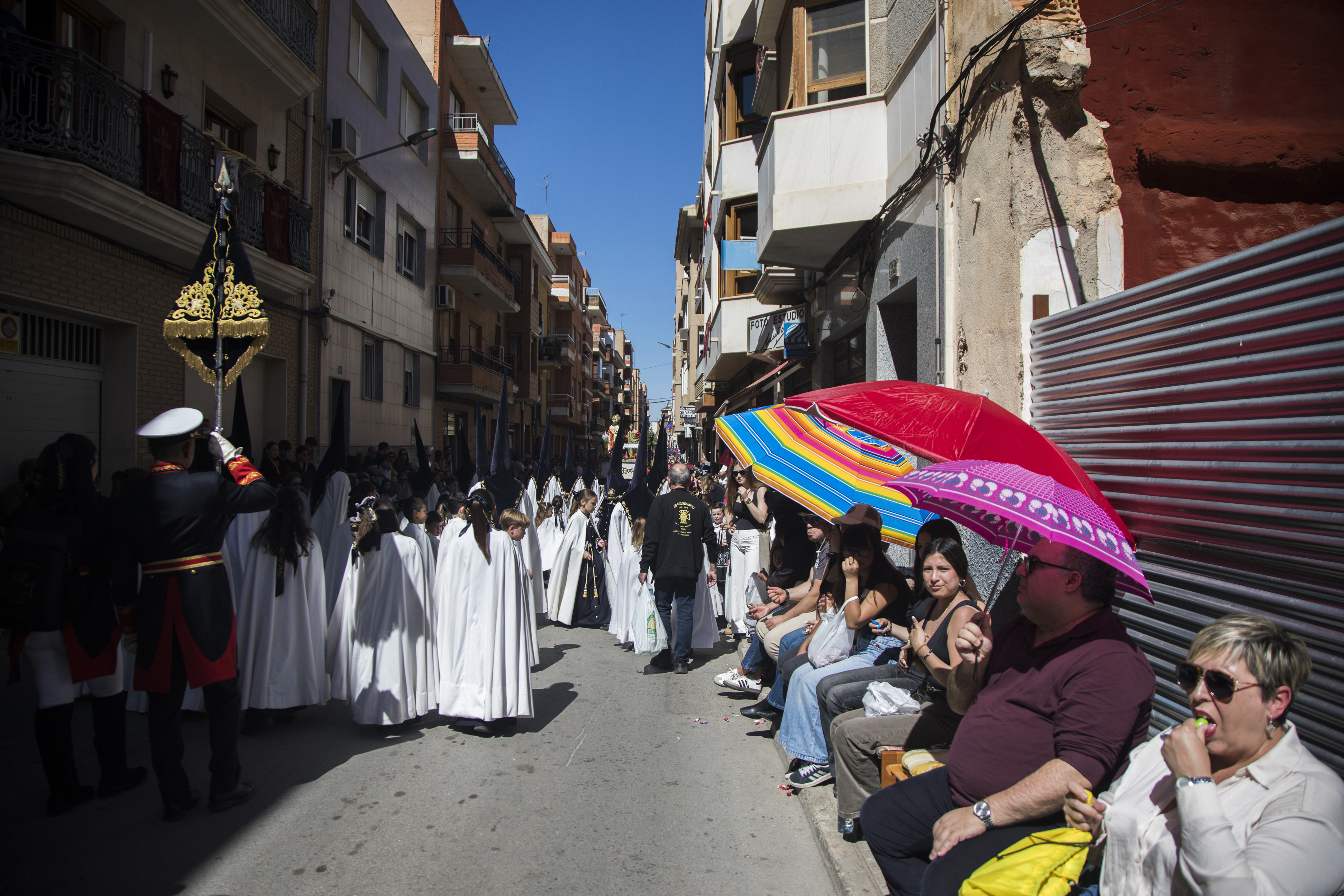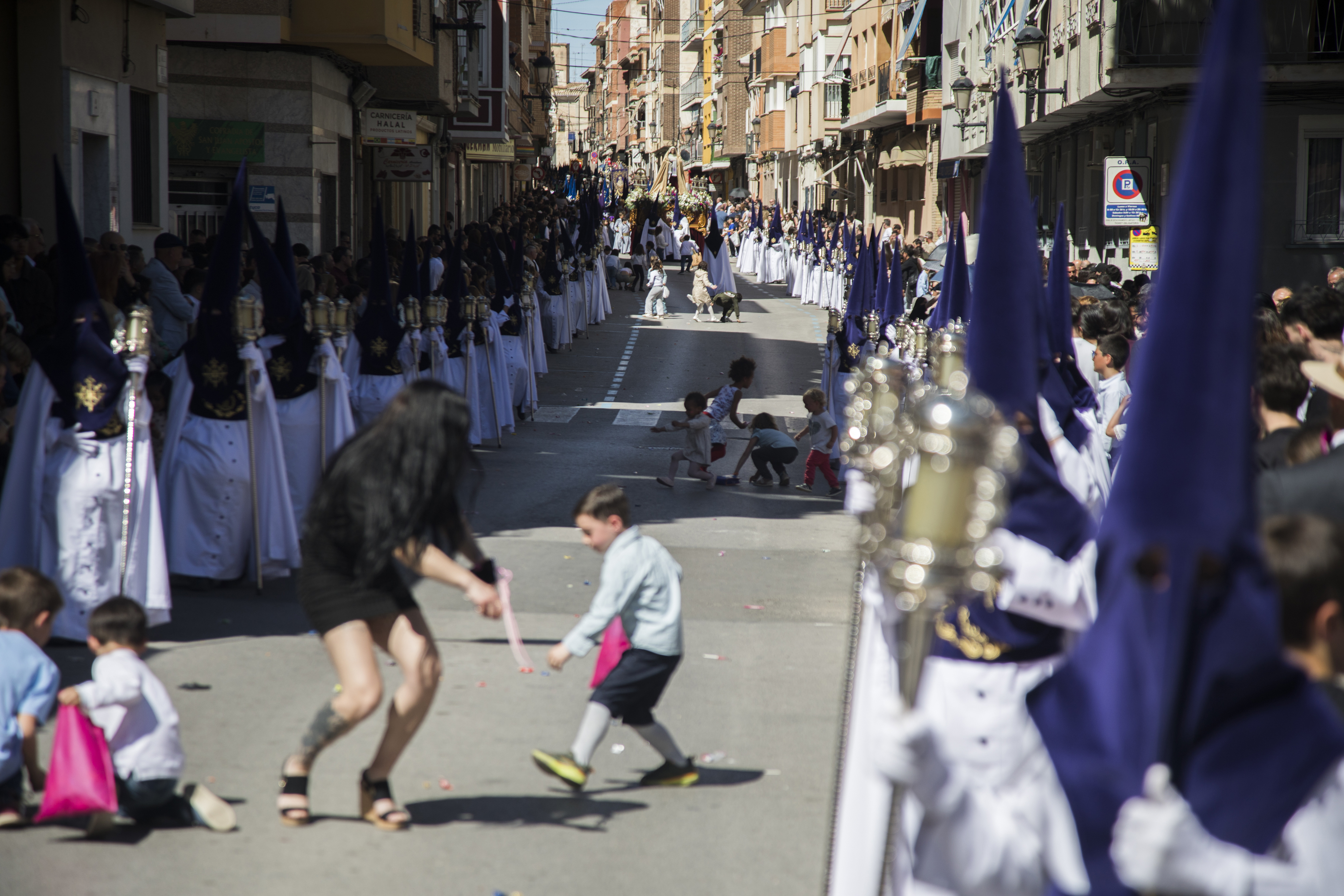 Los caramelos, la alegría y el color de la jornada llenó las calles centricas de la localidad para los vecinos que quisieron participar de la procesión más alegre de las que se desarrollan cada año. Un alegría que los pequeños viven recogiendo los cientos de kilos de caramelos que se lanzan por parte de las cofradías de la Semana Santa de Yecla.