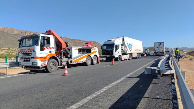 El primer problema se ha producido en las proximidades de Jumilla. Un tráiler que transportaba fruta ha sufrido una salida de vía y ha quedado obstaculizando la circulación.