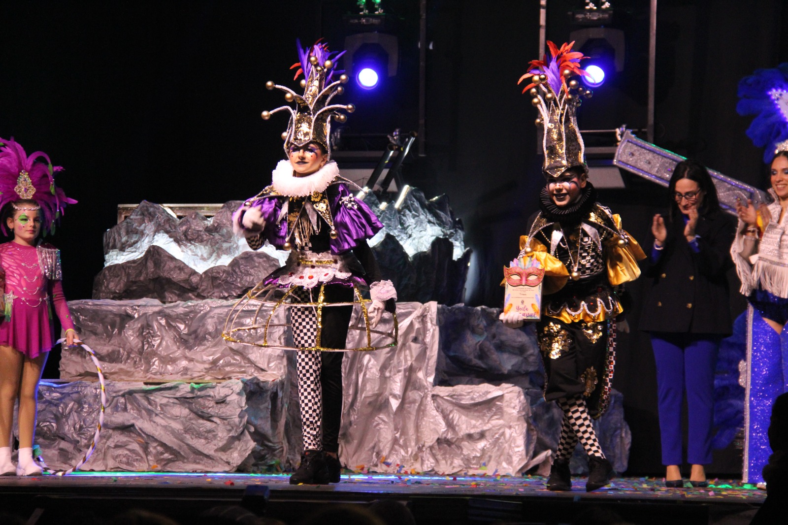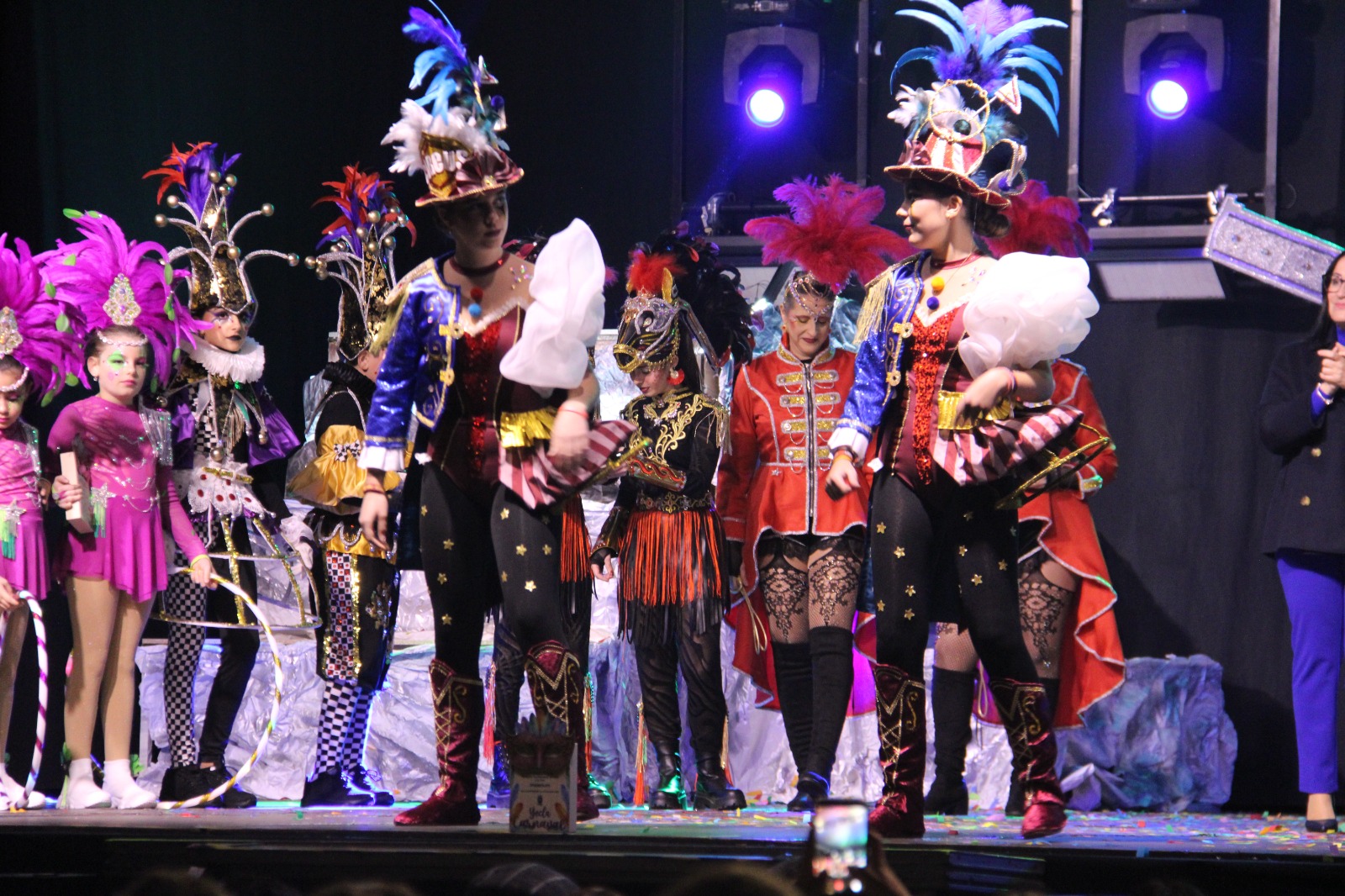 Durante la gala, que incluyó momentos de humor, pasaron por el escenario representantes de todas las peñas del carnaval yeclano. En esta ocasión, se notó la ausencia de la peña chirigotera ACHY, cuya participación fue muy recordada y echada en falta.
