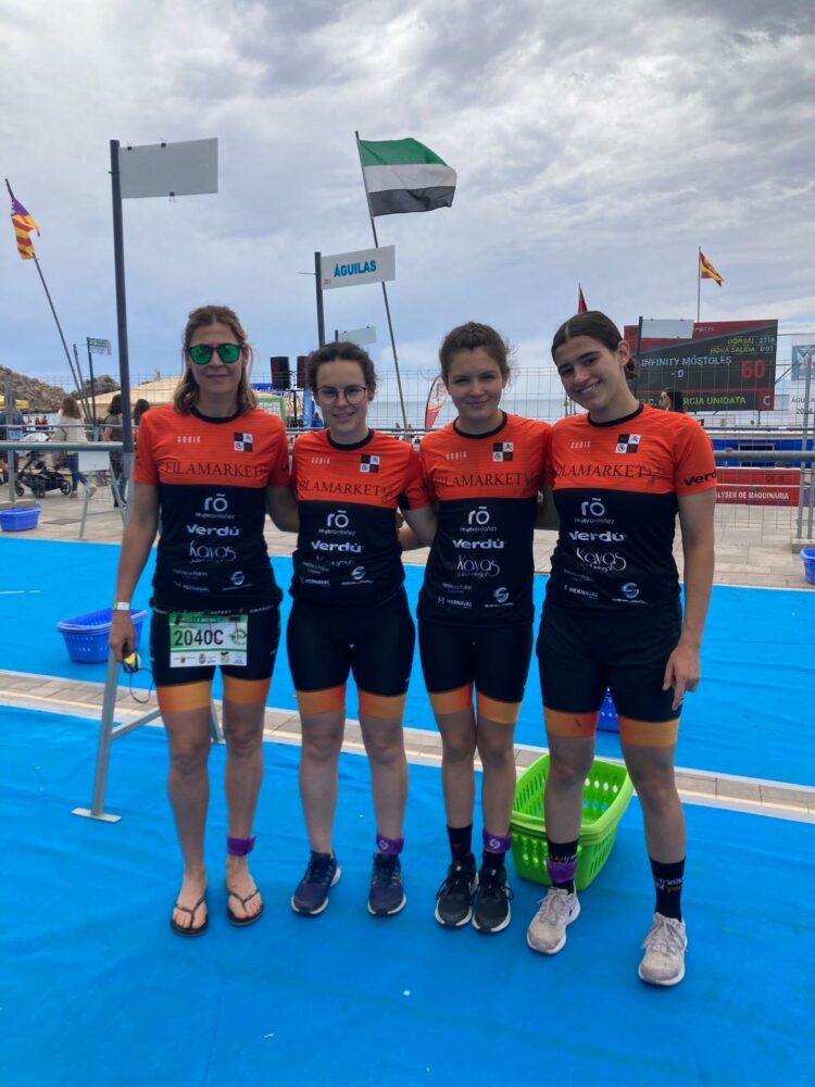 El domingo por la mañana se celebró el Campeonato de España de Relevos en la categoría Open, con distancia supersprint (250 m de natación, 4.5 km de ciclismo y 1 km de carrera). El club participó con dos equipos masculinos y uno femenino: