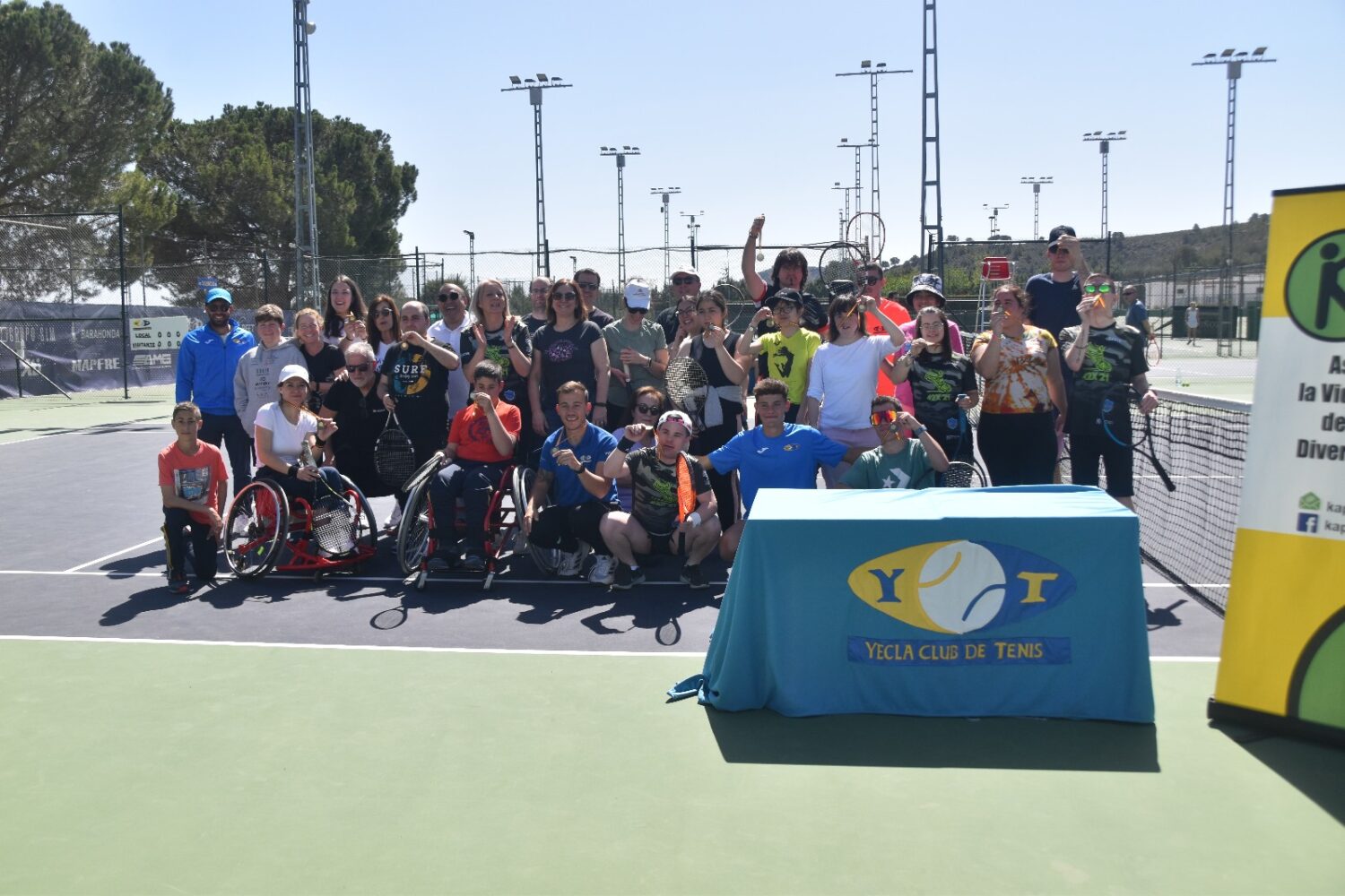 La I Jornada de Tenis Inclusivo, organizada por el Yecla Club de Tenis (YCT) y la Asociación Kapaces, recibió una valoración muy positiva tras su celebración el pasado sábado 13 de abril. El evento inició con un almuerzo típico de Yecla y continuó con una demostración de tenis por parte de profesores y alumnos del Yecla Club de Tenis para los usuarios de Kapaces, sus familiares y el público general.