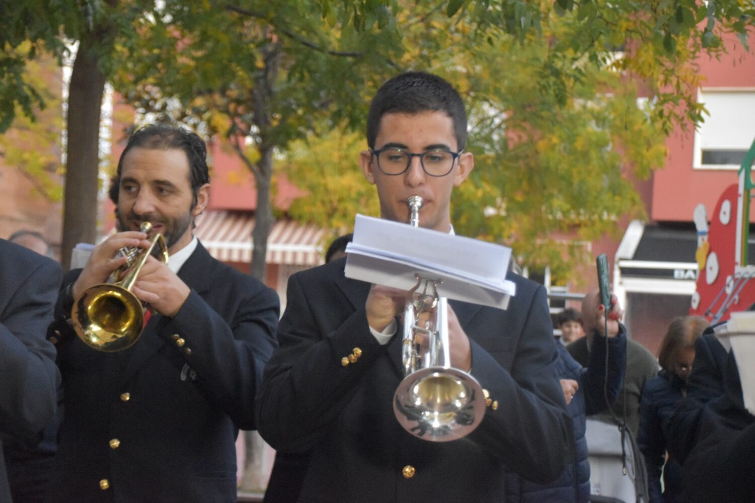 Posteriormente, el desfile se dirigió a la calle Fábricas, 5, para recoger al cuarto nuevo músico, Darío Carpena Melero, al saxofón.