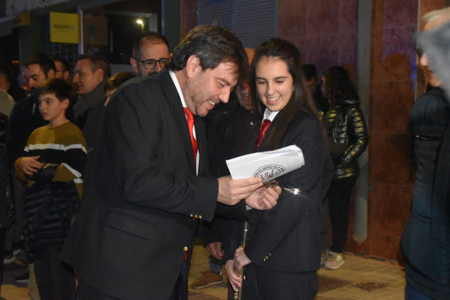 Antes de acabar, Ángel Hernández tenía preparada alguna sorpresa más. La banda interpretó «Los dos amigos», un pasodoble de estreno compuesto por el clarinetista yeclano Pedro Rubio en homenaje a sus dos grandes amigos, Manuel Quiles y Bartolomé Ibáñez.
