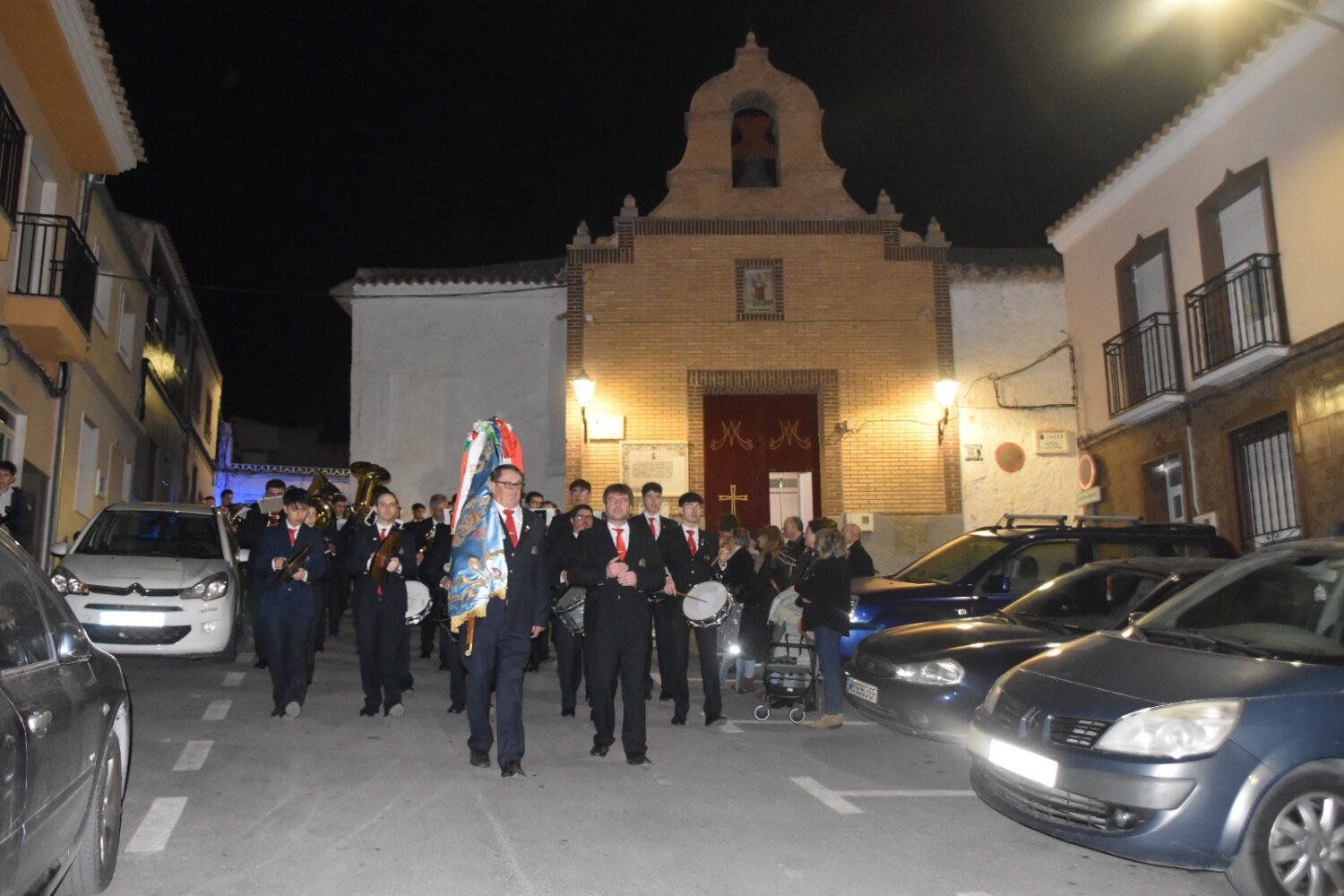 El desfile culminó alrededor de las 22:00 h en la Escuela de Música, donde los músicos, agotados pero satisfechos, fueron recibidos con aplausos.
