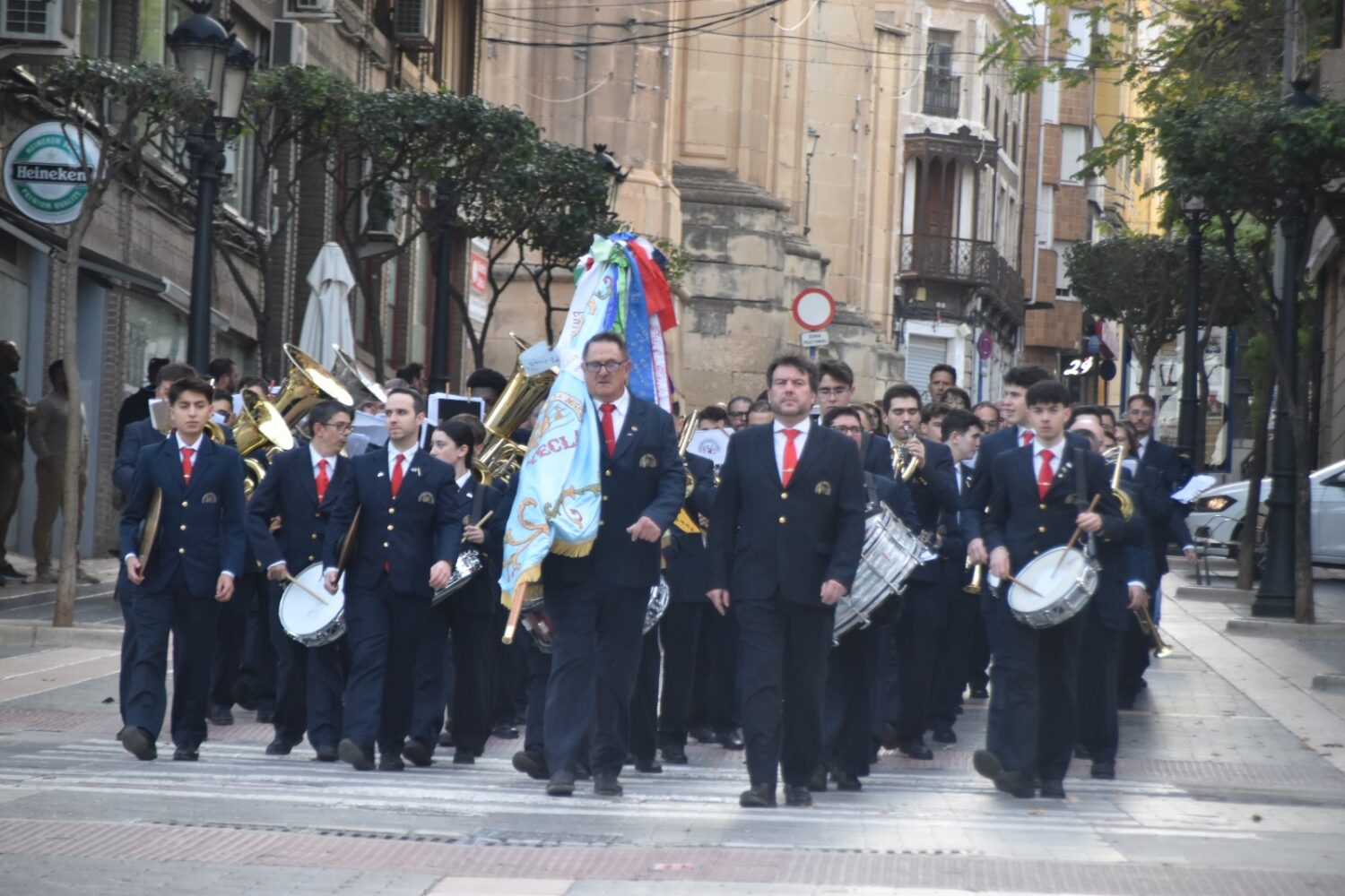 La celebración continuó el domingo con una intensa mañana de actos en honor a Santa Cecilia. A las 11:00 h, la Banda de Música desfiló desde la Escuela de Música hasta la Parroquia del Niño Jesús, acompañada por una representación de la Policía Nacional, con motivo de su 200º aniversario.