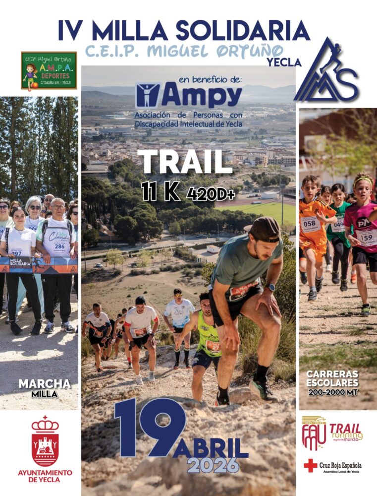 El CEIP Miguel Ortuño volverá a unir deporte y solidaridad con la celebración de la IV Milla Solidaria, prevista para el domingo 19 de abril en Yecla. La iniciativa está organizada por la Asociación de Padres y Madres del colegio, a través de su comisión de Deportes, y cuenta con la colaboración de la concejalía de Deportes del Ayuntamiento. En esta edición, el evento tendrá un carácter benéfico a favor de la Asociación de Personas con Discapacidad Intelectual de Yecla, AMPY.