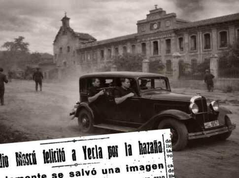 El recorte de periódico que pueden ver en la imagen que ilustra este artículo, “Radio Moscú felicitó a Yecla por la hazaña”, no ha sido creado por la Inteligencia Artificial (la imagen del coche...