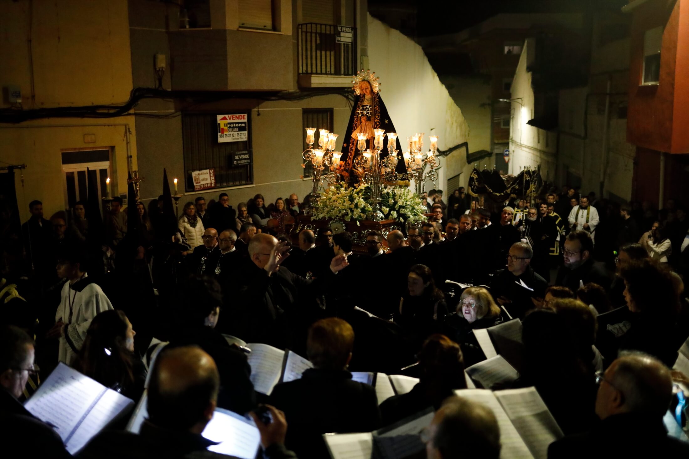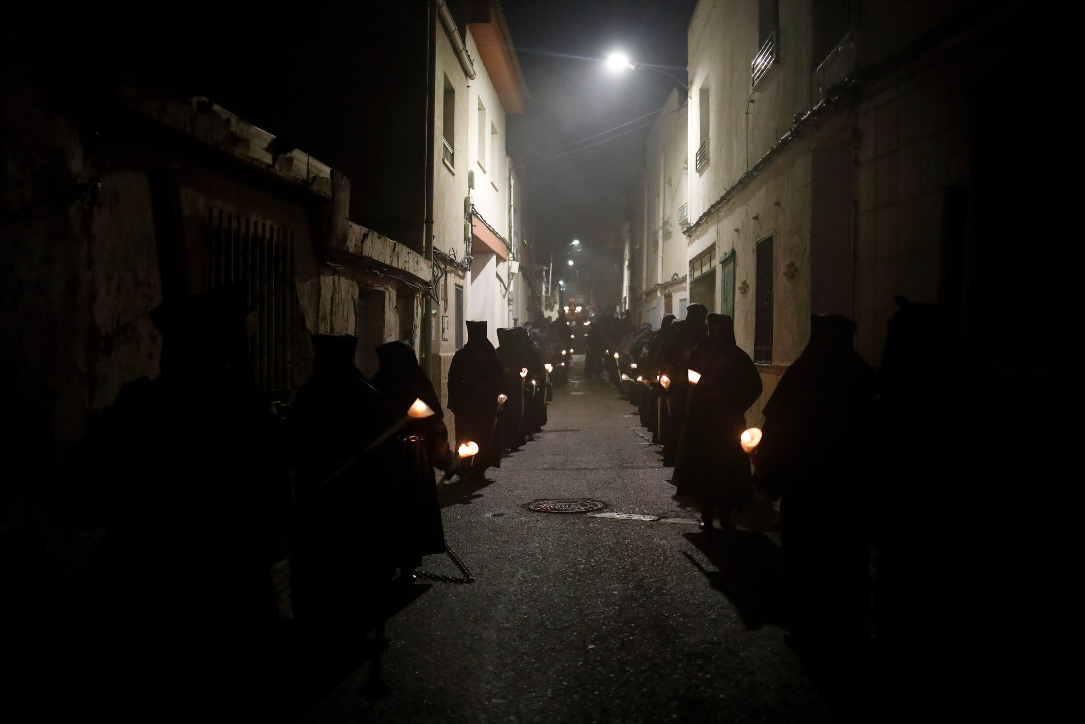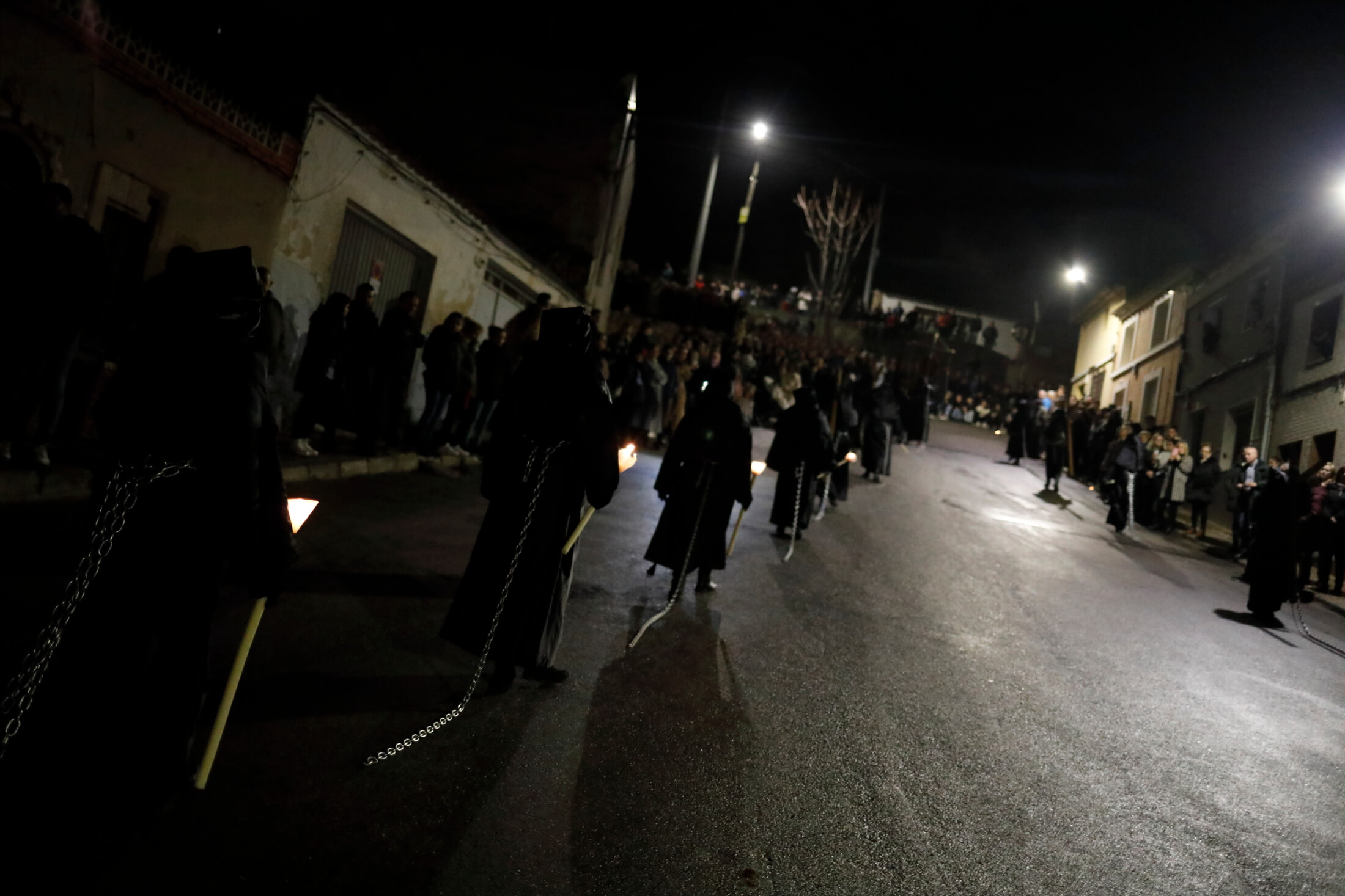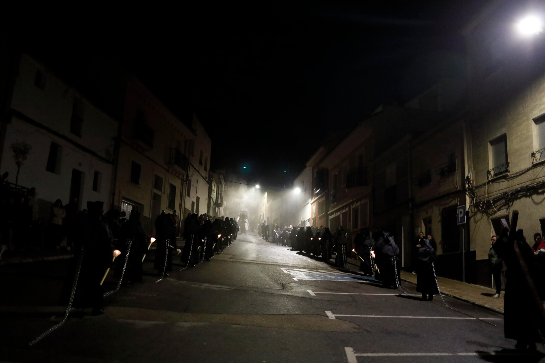 La procesión Penitencial del Rosario volvió a recorrer el casco antiguo de Yecla, con sus calles estrechas, y su ambiente de recogimiento.Desde 1980 se desarrolla está procesión que atraviesa el medieval de la ciuda. El sonido es otro de los elementos clave de esta procesión que transcurre acompañada de los cánticos de polifonía sacra, el sonido de las cadenas arrastradas por los capuchinos que participan con el rostro tapado y el constante rezo del «Ave María» del Santo Rosario.