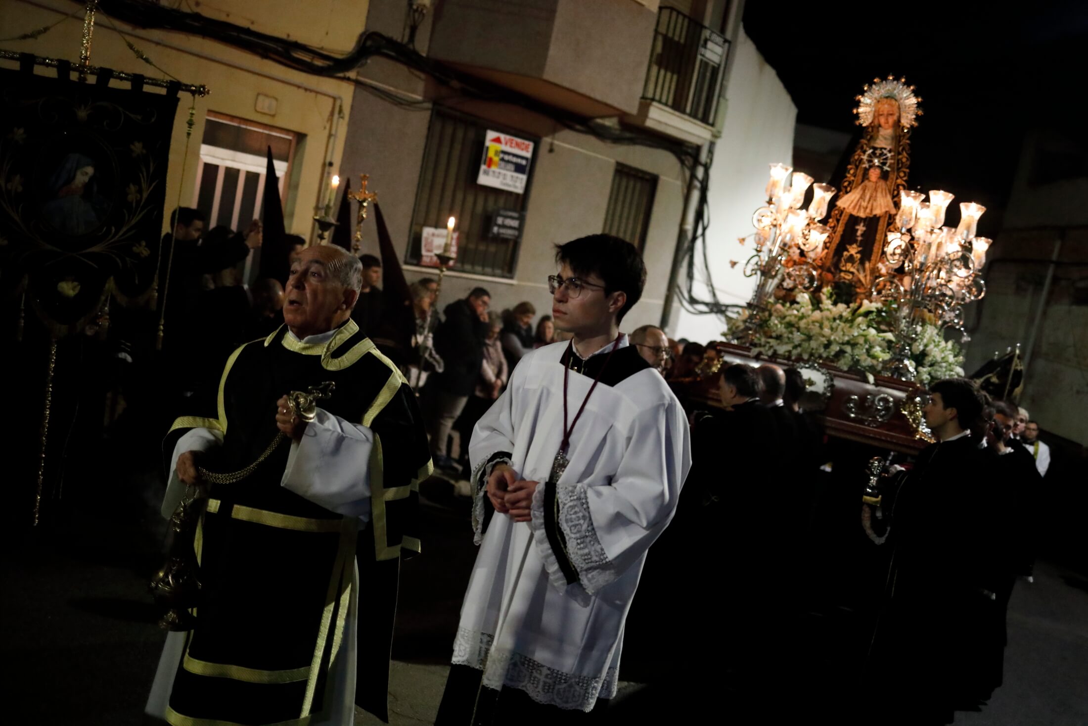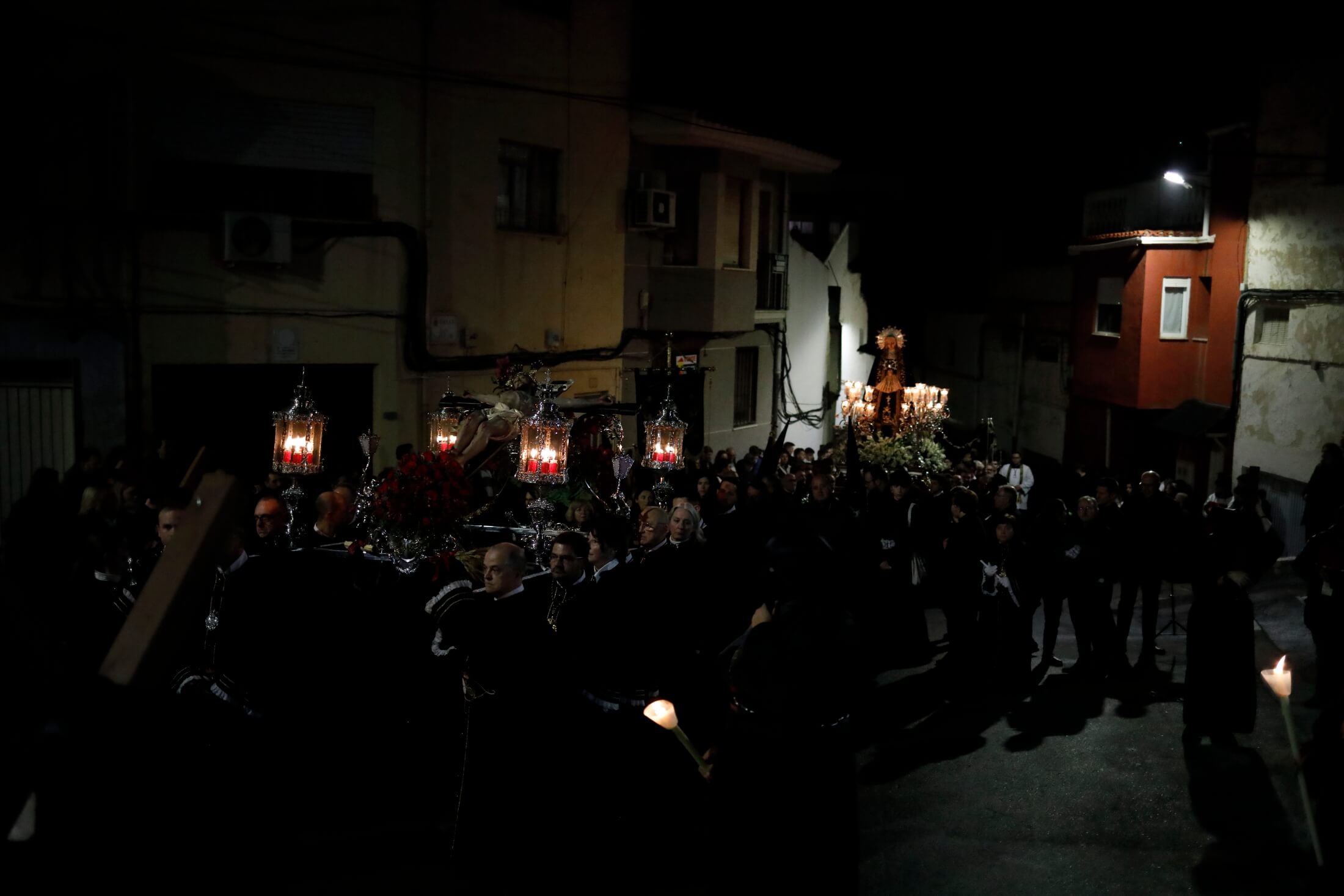 En esta procesión se entremezclan el silencio, la reflexión y la penitencia.Desde la Iglesia del niño partieron en plena noche los pasos del Santísimo Cristo de la Salud y María Santísima Dolorosa. Las autoridades locales estaban acompañadas del Consejero de Educación, Víctor Marín.Los vecinos de Yecla acompañaron a los penitentes en su lento caminar, con la cruz y las cadenas arrastrando su caminar entre el incienso que impregnaba el ambiente de una fría noche del mes de marzo en Yecla.