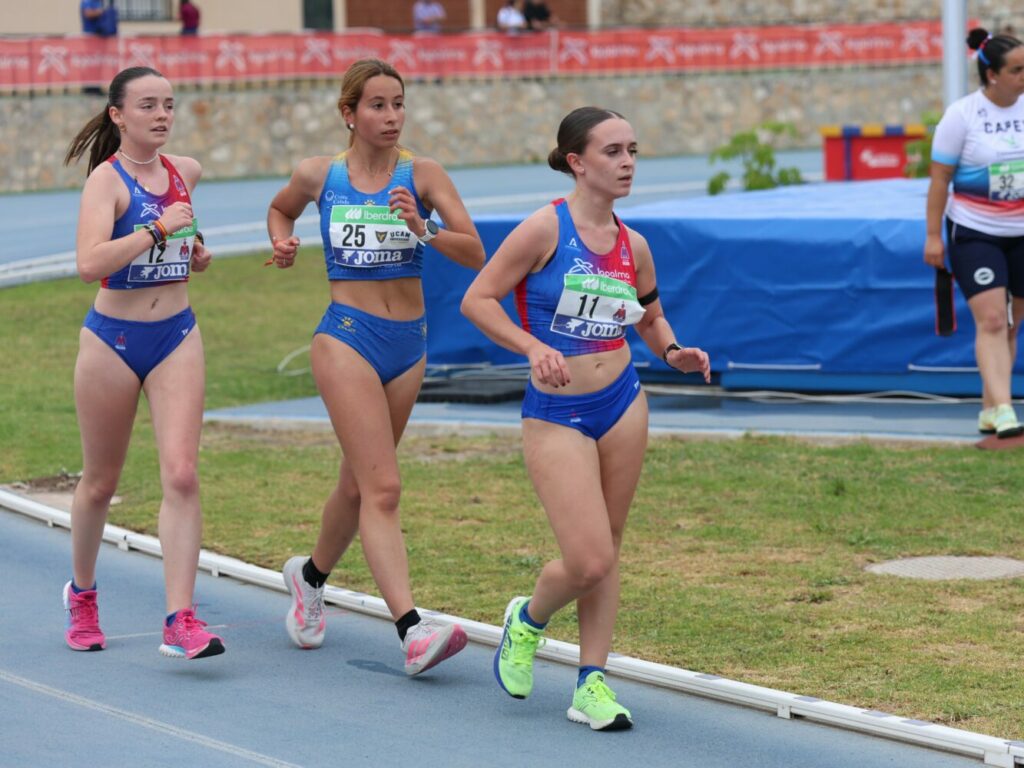 En los 5.000 metros marcha en pista, Estela Muñoz logró la tercera plaza con una nueva marca personal de 25:17.35, confirmando su buen momento de forma. Por su parte, Carmen González aportó regularidad al equipo con una cuarta posición en los 3.000 metros, con un registro de 11:08.23.