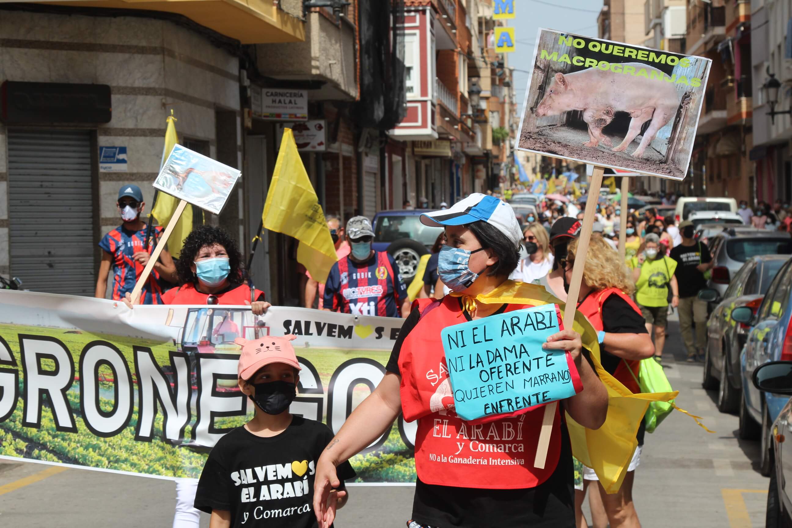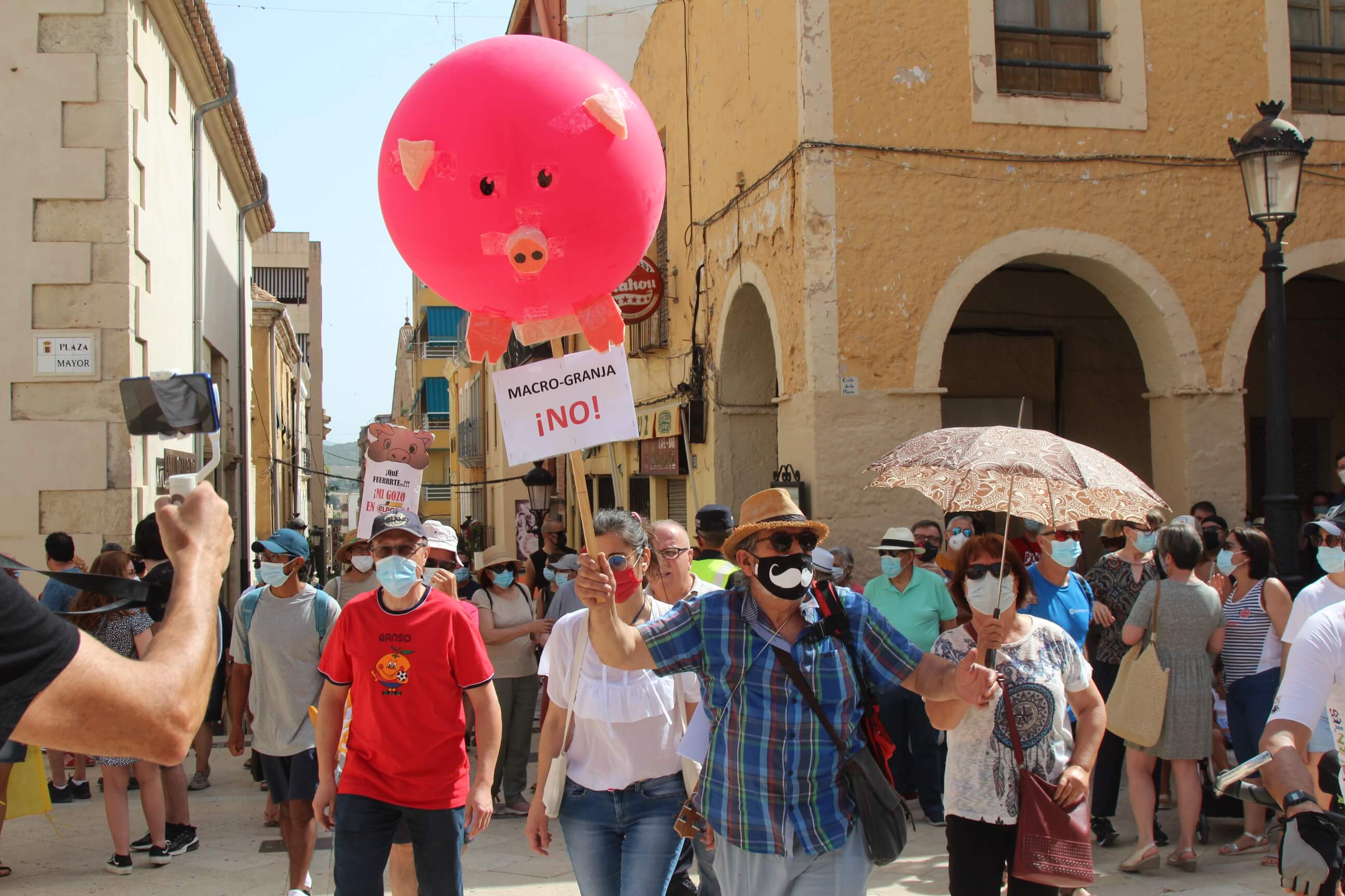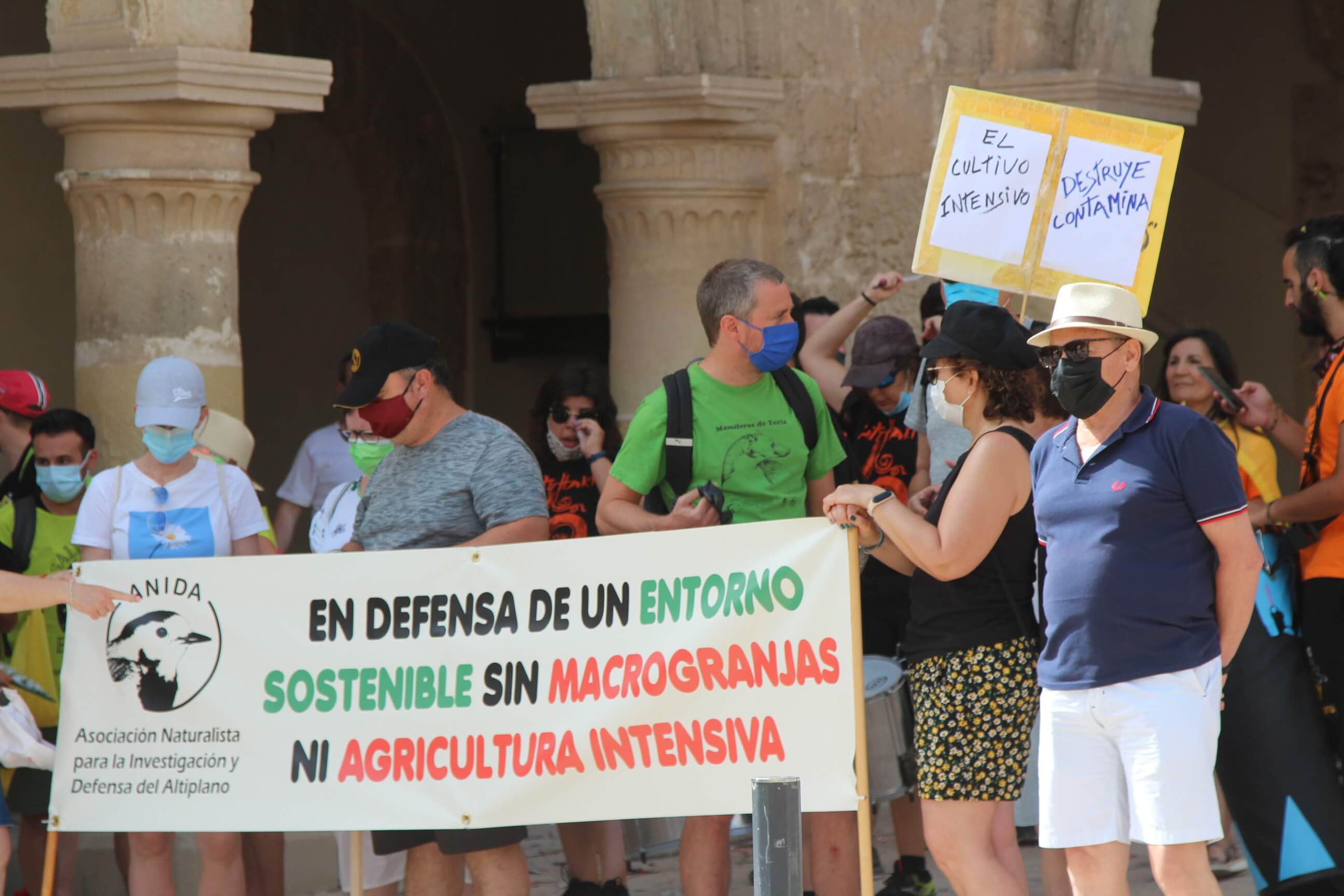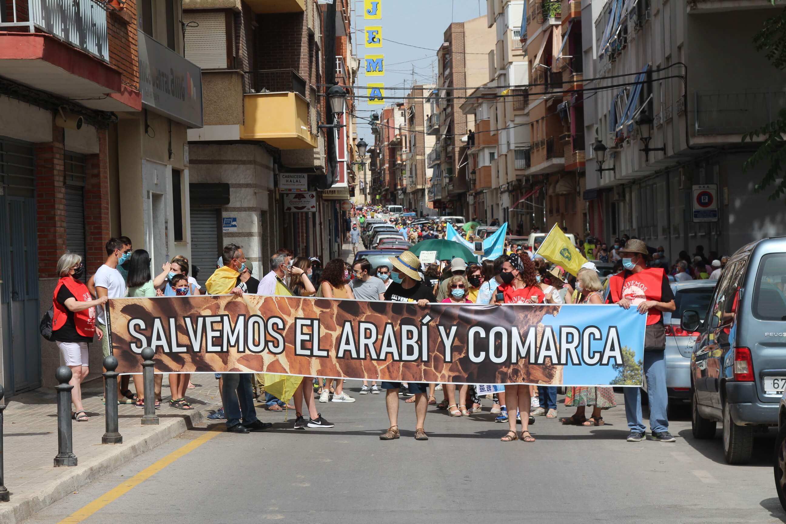 Ni el intenso calor, más de 35 grados a la sombra, ni las medidas sanitarias que obligaron a todos los asistentes a llevar puesta la mascarilla al aire libre…nada ha evitado que miles de vecinos de Yecla volvieran a salir a la calle cuatro años después para salvar el Monte Arabí.Se trata de un espacio natural, primer Monumento Natural de la Región de Murcia y declarado patrimonio de la humanidad por la UNESCO, tiene desde hace cuatro años la amenaza de la construcción de una macrogranja porcina en sus proximidades. Hace cuatro años la ciudadanía de Yecla salió a la calle para mostrar su rotunda oposición y hoy de nuevo la respuesta fue multitudinaria.La Policía Local cuantificó entre 10.000 y 12.000 las personas presentes en el acto de protesta. Los organizadores hablaron de unas 14.000, cifra semejante a la de hace cuatro años. Sea cual sea el número de personas que acudieron a la manifestación, lo cierto es que había muchas personas y que eran de todos los ámbitos sociales, diferentes ideologías, representando a entidades, organismos, asociaciones, colectivos y partidos políticos. “Estamos emocionados con la respuesta a la convocatoria”, expresó uno de los portavoces de la plataforma ciudadana, Salvemos el Arabí y Comarca, que organizó esta manifestación debido a la intención en los últimos meses de reactivar el proyecto por parte de Cefusa. Una empresa que hace cuatro años aseguró que valoraba “la oposición tanto de los grupos políticos locales de Yecla como de la plataforma creada en contra de dicho proyecto” y paralizó su continuidad. Sin embargo, en los últimos meses, y antes de que terminen los plazos legales que tiene para construirla, la firma ha reactivado los trámites ante la Confederación Hidrográfica del Segura para el uso ganadero del agua y ante el consistorio manchego de Montealegre del Castillo para obtener la licencia de obras de la construcción. “No han cumplido con su palabra”, dijo el portavoz de la plataforma, Alejandro Ortuño, en la lectura de un duro manifiesto contra la empresa y sus productos que se leyó al finalizar la marcha por las calles principales de Yecla.Además, Ortuño condenó la que considera la plataforma “la falta de ética, de escrúpulos y de responsabilidad social corporativa de la empresa al querer pasar por encima de la voluntad de todo un pueblo…si siguen adelante el conflicto va a ser constante con nosotros. No vamos a parar”, expresó recibiendo un largo aplauso de los presentes que se congregaron al final de la manifestación en el Parque de la Constitución y en las calles adyacentes.Además de los convocantes, al escenario subieron representantes de diferentes colectivos de localidades de la Región de Murcia y Castilla-La Mancha afectados por la proliferación de estas macrogranjas porcinas que relataron los daños medioambientales que generan, entre otros la contaminación de los acuíferos de los que se abastecen las poblaciones.Allí se escucharon críticas a las administraciones públicas por no proteger espacios de un valor incalculable como el Monte Arabí de proyectos empresariales como el que les reunió en la protesta. Después la de marcha pacífica por las calles céntricas de Yecla y de la lectura del manifiesto en varias intervenciones, dos horas después los miles de personas presentes en la manifestación se dispersaron con la sensación generalizada de que los vecinos de Yecla vuelven a estar movilizados para defender el Monte Arabí, todo un símbolo para la localidad.