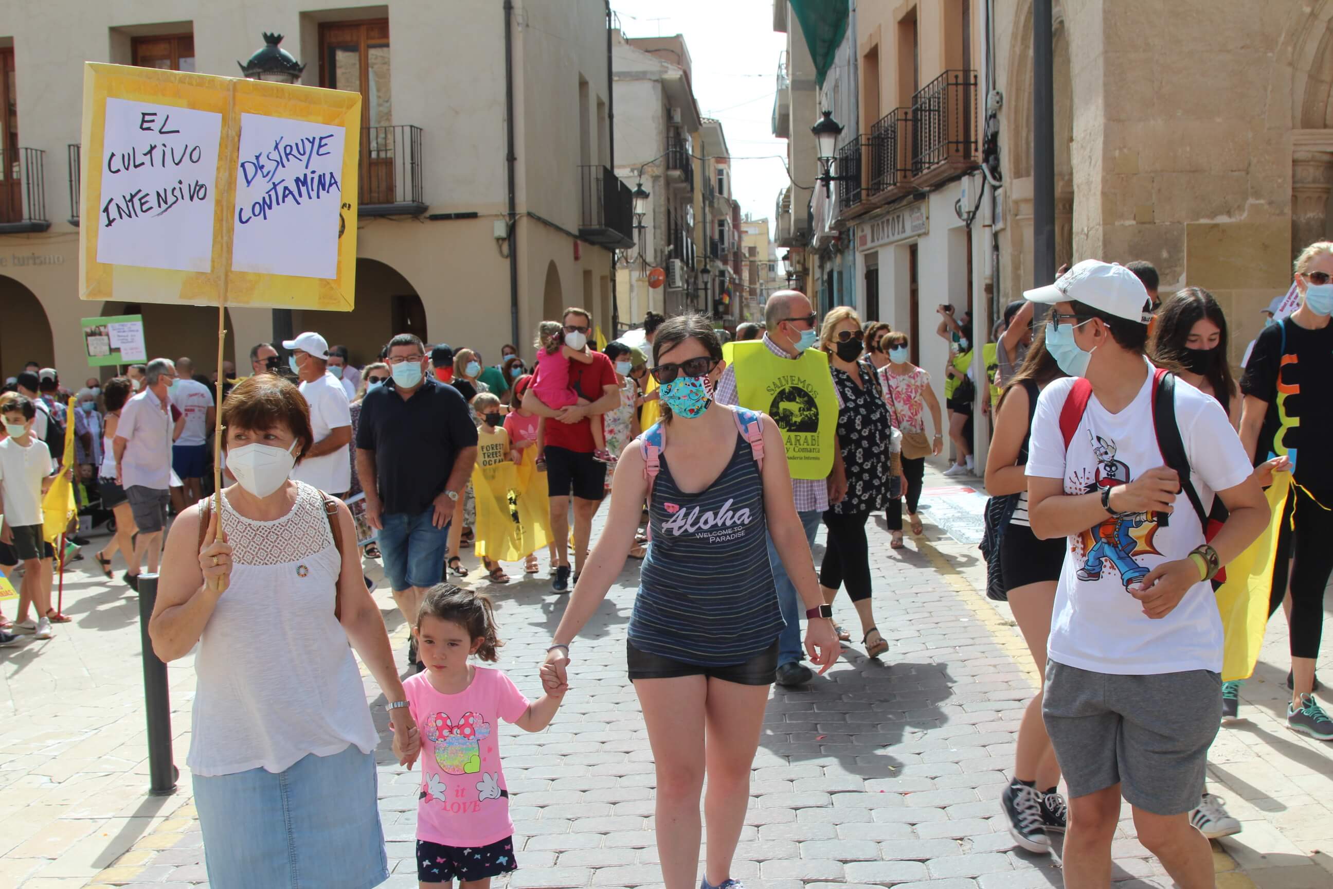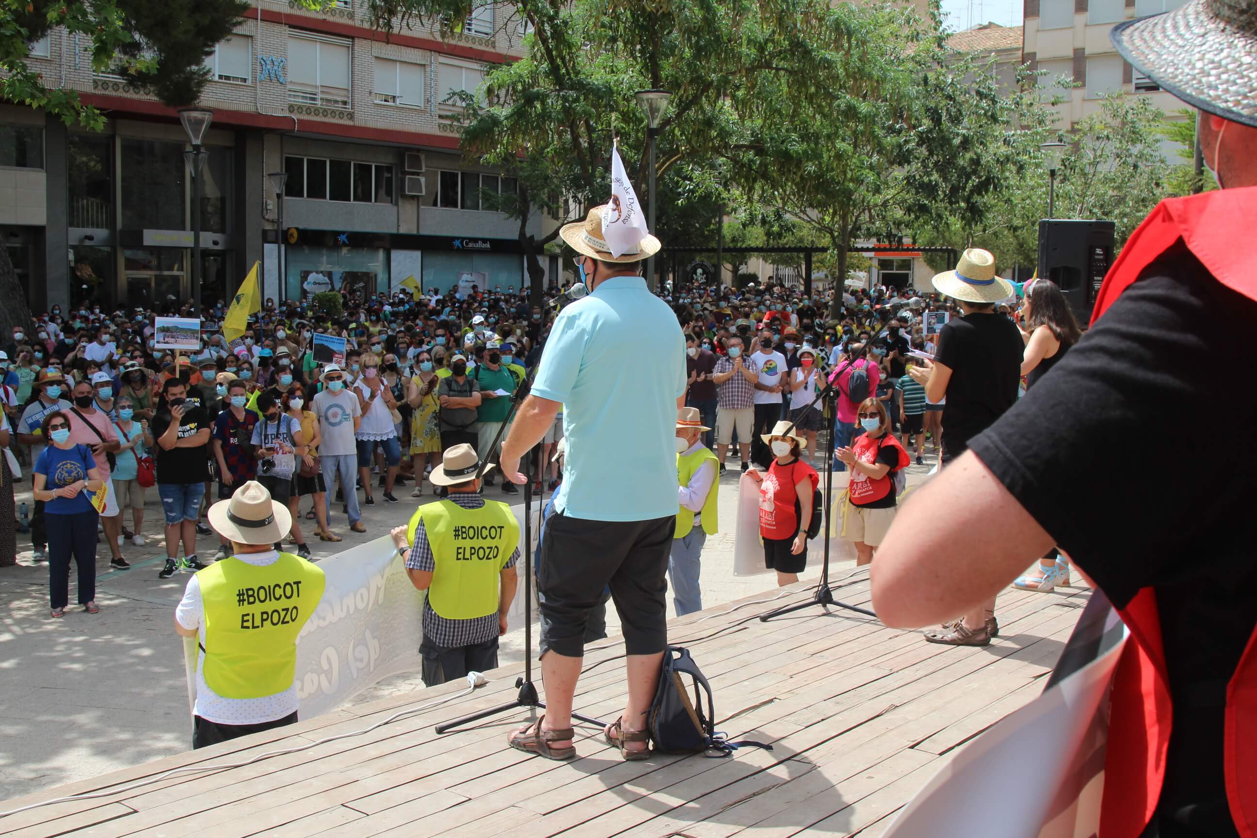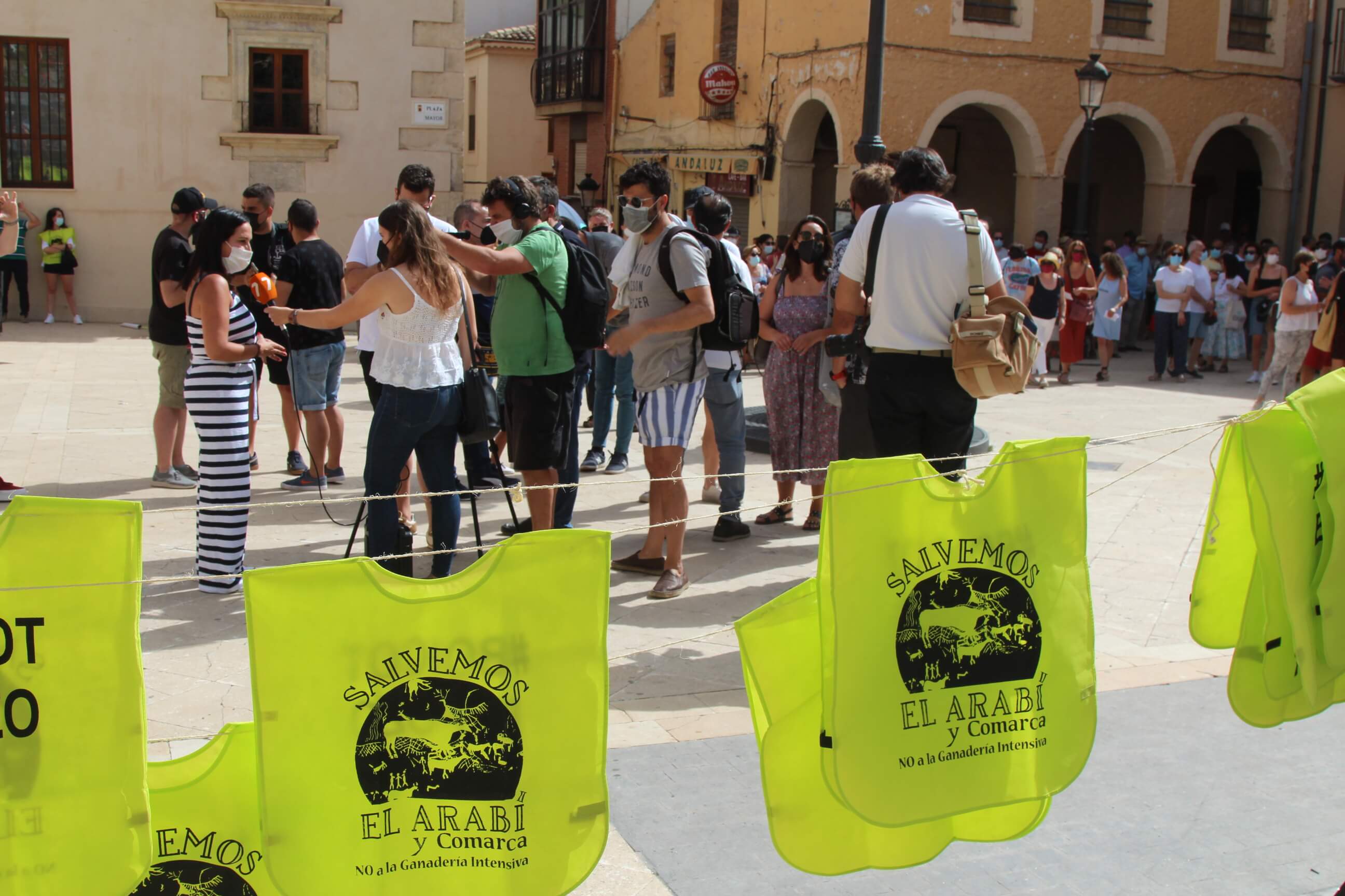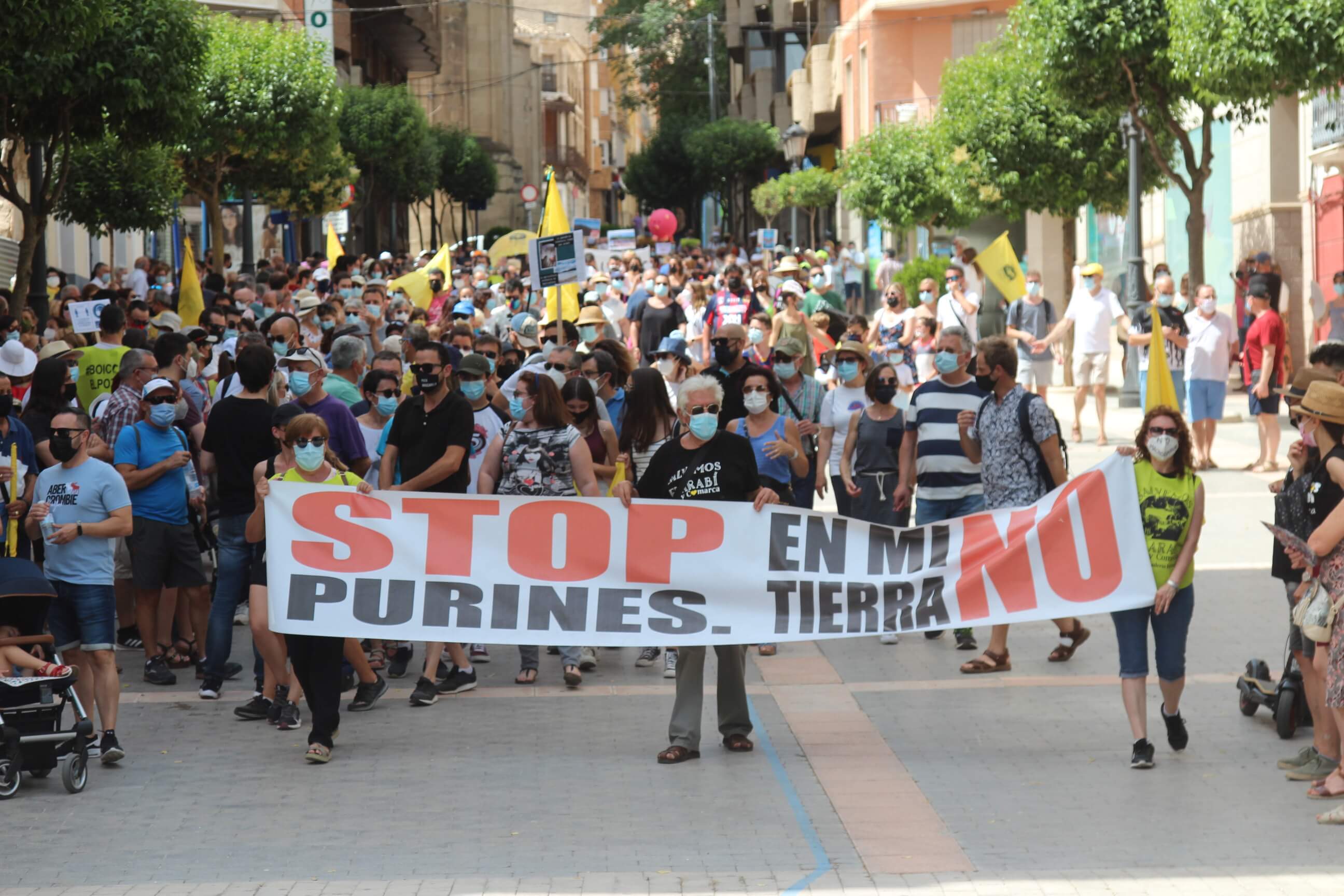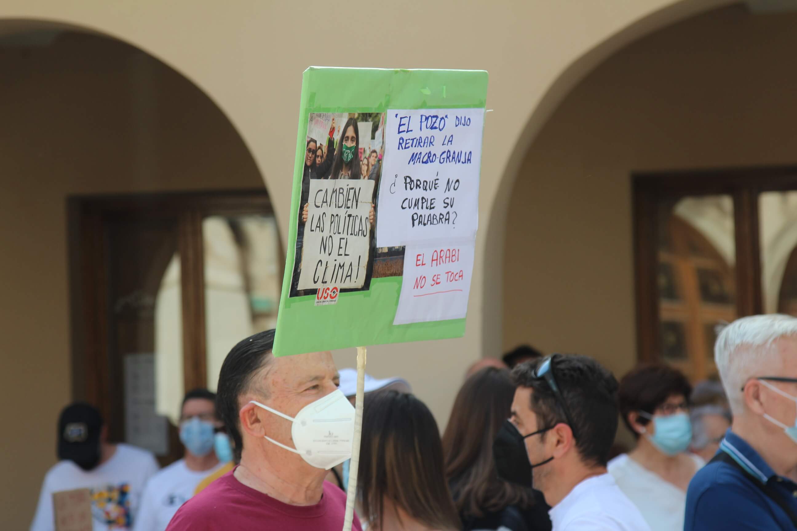 Ni el intenso calor, más de 35 grados a la sombra, ni las medidas sanitarias que obligaron a todos los asistentes a llevar puesta la mascarilla al aire libre…nada ha evitado que miles de vecinos de Yecla volvieran a salir a la calle cuatro años después para salvar el Monte Arabí.Se trata de un espacio natural, primer Monumento Natural de la Región de Murcia y declarado patrimonio de la humanidad por la UNESCO, tiene desde hace cuatro años la amenaza de la construcción de una macrogranja porcina en sus proximidades. Hace cuatro años la ciudadanía de Yecla salió a la calle para mostrar su rotunda oposición y hoy de nuevo la respuesta fue multitudinaria.La Policía Local cuantificó entre 10.000 y 12.000 las personas presentes en el acto de protesta. Los organizadores hablaron de unas 14.000, cifra semejante a la de hace cuatro años. Sea cual sea el número de personas que acudieron a la manifestación, lo cierto es que había muchas personas y que eran de todos los ámbitos sociales, diferentes ideologías, representando a entidades, organismos, asociaciones, colectivos y partidos políticos. “Estamos emocionados con la respuesta a la convocatoria”, expresó uno de los portavoces de la plataforma ciudadana, Salvemos el Arabí y Comarca, que organizó esta manifestación debido a la intención en los últimos meses de reactivar el proyecto por parte de Cefusa. Una empresa que hace cuatro años aseguró que valoraba “la oposición tanto de los grupos políticos locales de Yecla como de la plataforma creada en contra de dicho proyecto” y paralizó su continuidad. Sin embargo, en los últimos meses, y antes de que terminen los plazos legales que tiene para construirla, la firma ha reactivado los trámites ante la Confederación Hidrográfica del Segura para el uso ganadero del agua y ante el consistorio manchego de Montealegre del Castillo para obtener la licencia de obras de la construcción. “No han cumplido con su palabra”, dijo el portavoz de la plataforma, Alejandro Ortuño, en la lectura de un duro manifiesto contra la empresa y sus productos que se leyó al finalizar la marcha por las calles principales de Yecla.Además, Ortuño condenó la que considera la plataforma “la falta de ética, de escrúpulos y de responsabilidad social corporativa de la empresa al querer pasar por encima de la voluntad de todo un pueblo…si siguen adelante el conflicto va a ser constante con nosotros. No vamos a parar”, expresó recibiendo un largo aplauso de los presentes que se congregaron al final de la manifestación en el Parque de la Constitución y en las calles adyacentes.Además de los convocantes, al escenario subieron representantes de diferentes colectivos de localidades de la Región de Murcia y Castilla-La Mancha afectados por la proliferación de estas macrogranjas porcinas que relataron los daños medioambientales que generan, entre otros la contaminación de los acuíferos de los que se abastecen las poblaciones.Allí se escucharon críticas a las administraciones públicas por no proteger espacios de un valor incalculable como el Monte Arabí de proyectos empresariales como el que les reunió en la protesta. Después la de marcha pacífica por las calles céntricas de Yecla y de la lectura del manifiesto en varias intervenciones, dos horas después los miles de personas presentes en la manifestación se dispersaron con la sensación generalizada de que los vecinos de Yecla vuelven a estar movilizados para defender el Monte Arabí, todo un símbolo para la localidad.