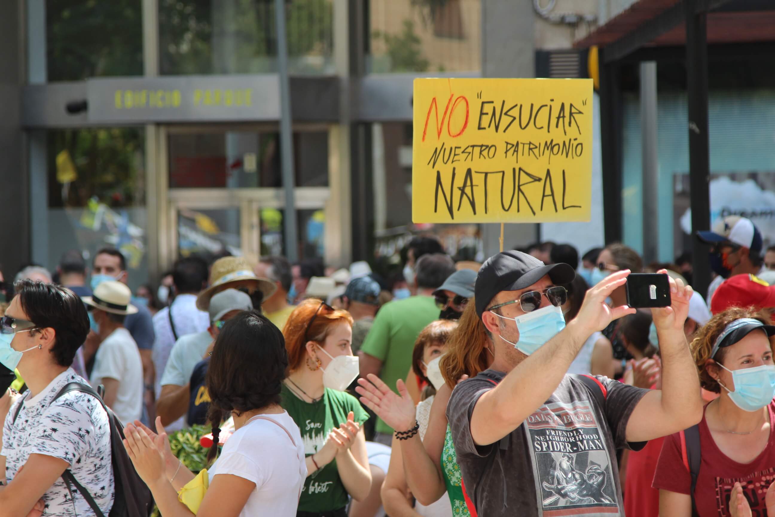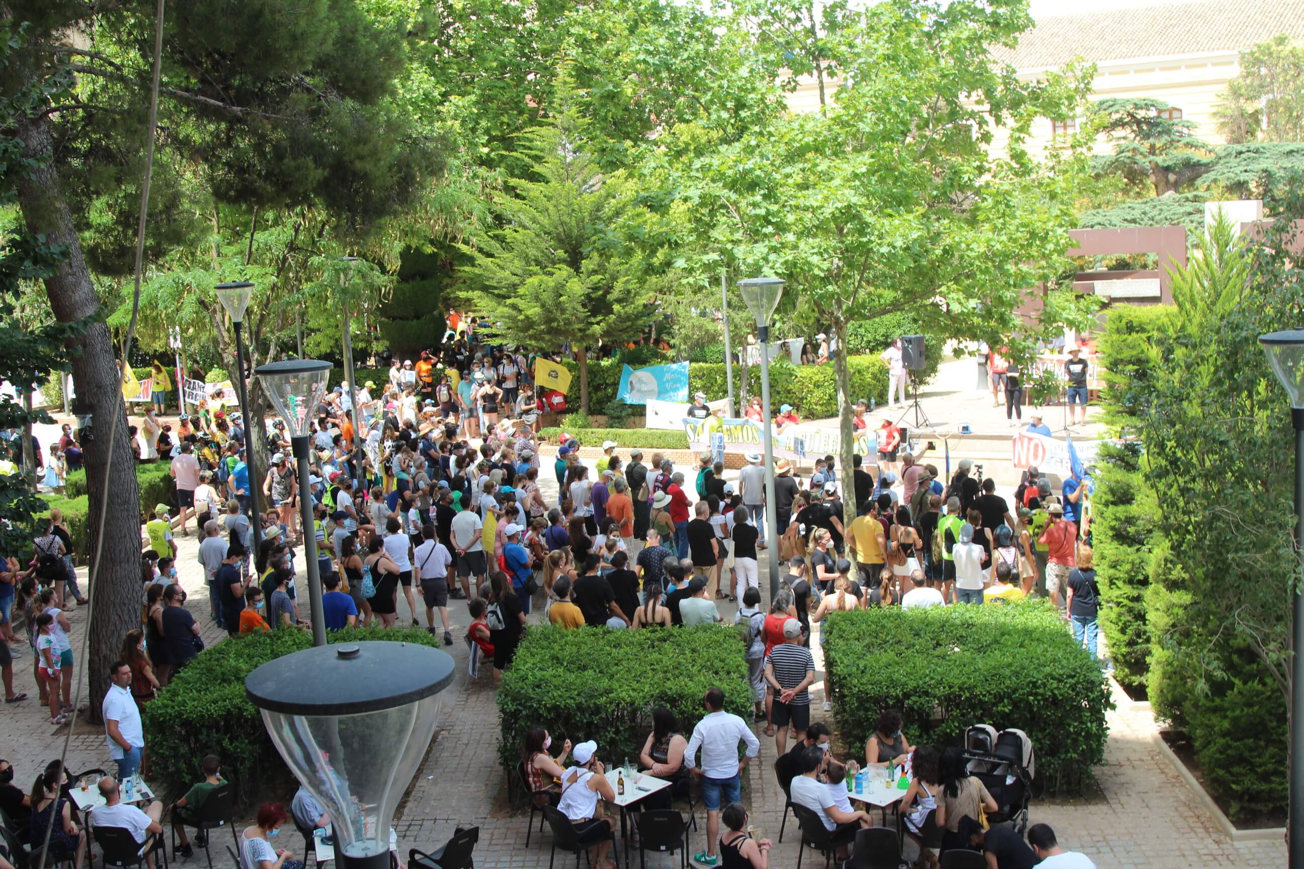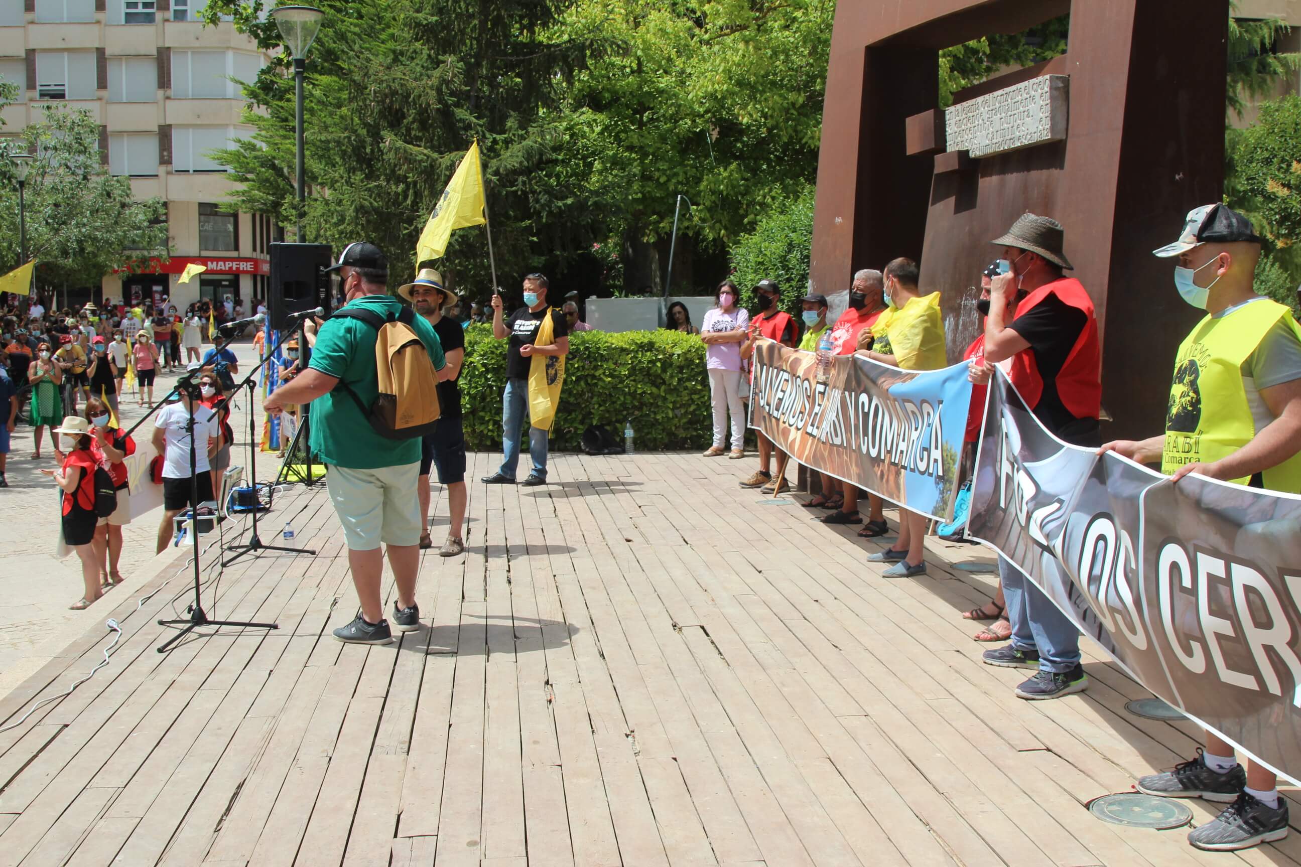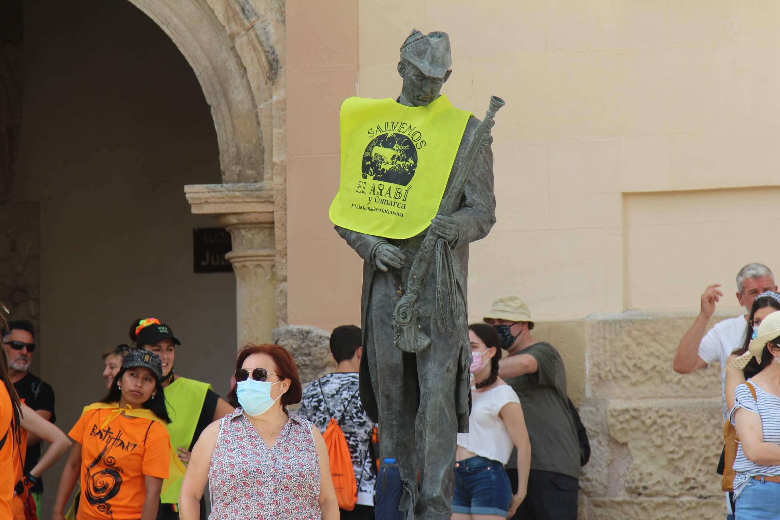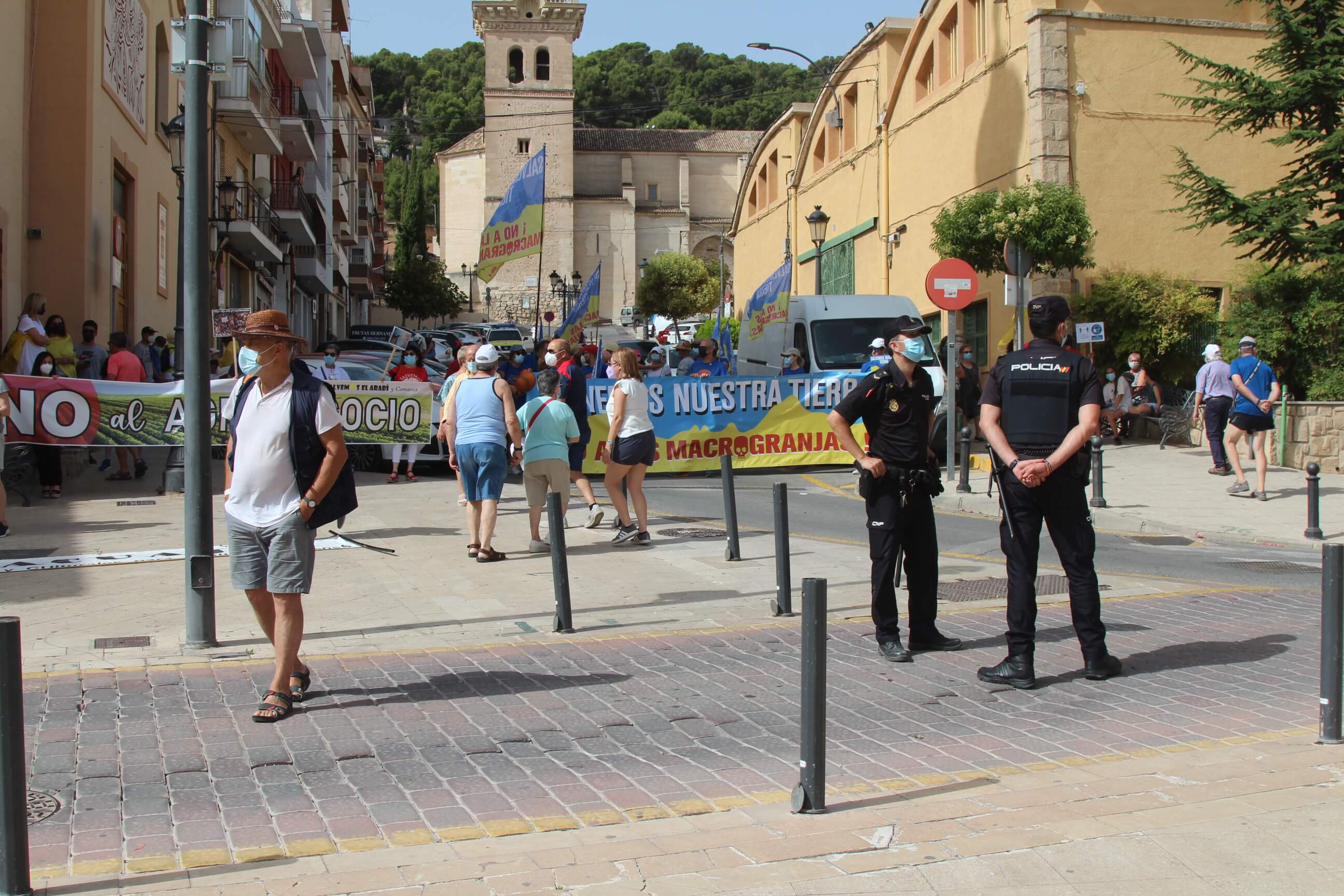 Ni el intenso calor, más de 35 grados a la sombra, ni las medidas sanitarias que obligaron a todos los asistentes a llevar puesta la mascarilla al aire libre…nada ha evitado que miles de vecinos de Yecla volvieran a salir a la calle cuatro años después para salvar el Monte Arabí.Se trata de un espacio natural, primer Monumento Natural de la Región de Murcia y declarado patrimonio de la humanidad por la UNESCO, tiene desde hace cuatro años la amenaza de la construcción de una macrogranja porcina en sus proximidades. Hace cuatro años la ciudadanía de Yecla salió a la calle para mostrar su rotunda oposición y hoy de nuevo la respuesta fue multitudinaria.La Policía Local cuantificó entre 10.000 y 12.000 las personas presentes en el acto de protesta. Los organizadores hablaron de unas 14.000, cifra semejante a la de hace cuatro años. Sea cual sea el número de personas que acudieron a la manifestación, lo cierto es que había muchas personas y que eran de todos los ámbitos sociales, diferentes ideologías, representando a entidades, organismos, asociaciones, colectivos y partidos políticos. “Estamos emocionados con la respuesta a la convocatoria”, expresó uno de los portavoces de la plataforma ciudadana, Salvemos el Arabí y Comarca, que organizó esta manifestación debido a la intención en los últimos meses de reactivar el proyecto por parte de Cefusa. Una empresa que hace cuatro años aseguró que valoraba “la oposición tanto de los grupos políticos locales de Yecla como de la plataforma creada en contra de dicho proyecto” y paralizó su continuidad. Sin embargo, en los últimos meses, y antes de que terminen los plazos legales que tiene para construirla, la firma ha reactivado los trámites ante la Confederación Hidrográfica del Segura para el uso ganadero del agua y ante el consistorio manchego de Montealegre del Castillo para obtener la licencia de obras de la construcción. “No han cumplido con su palabra”, dijo el portavoz de la plataforma, Alejandro Ortuño, en la lectura de un duro manifiesto contra la empresa y sus productos que se leyó al finalizar la marcha por las calles principales de Yecla.Además, Ortuño condenó la que considera la plataforma “la falta de ética, de escrúpulos y de responsabilidad social corporativa de la empresa al querer pasar por encima de la voluntad de todo un pueblo…si siguen adelante el conflicto va a ser constante con nosotros. No vamos a parar”, expresó recibiendo un largo aplauso de los presentes que se congregaron al final de la manifestación en el Parque de la Constitución y en las calles adyacentes.Además de los convocantes, al escenario subieron representantes de diferentes colectivos de localidades de la Región de Murcia y Castilla-La Mancha afectados por la proliferación de estas macrogranjas porcinas que relataron los daños medioambientales que generan, entre otros la contaminación de los acuíferos de los que se abastecen las poblaciones.Allí se escucharon críticas a las administraciones públicas por no proteger espacios de un valor incalculable como el Monte Arabí de proyectos empresariales como el que les reunió en la protesta. Después la de marcha pacífica por las calles céntricas de Yecla y de la lectura del manifiesto en varias intervenciones, dos horas después los miles de personas presentes en la manifestación se dispersaron con la sensación generalizada de que los vecinos de Yecla vuelven a estar movilizados para defender el Monte Arabí, todo un símbolo para la localidad.