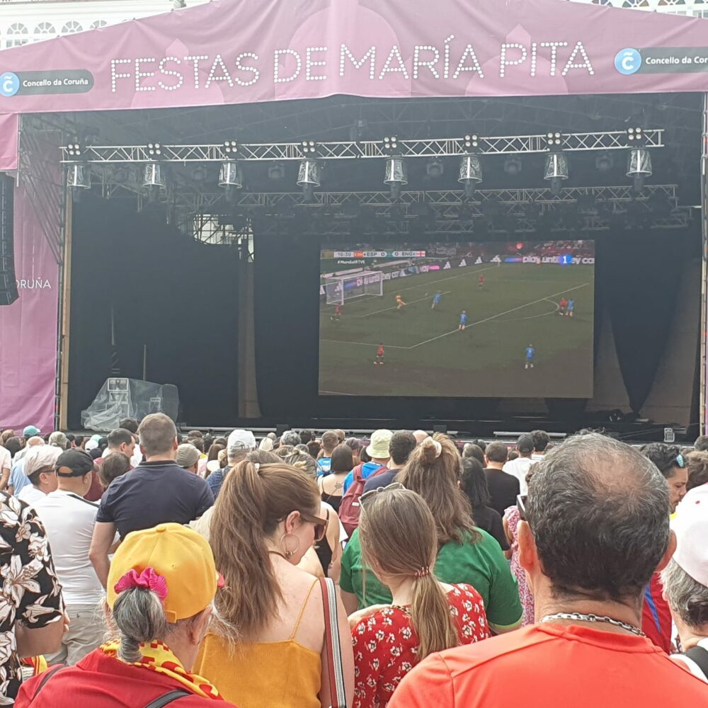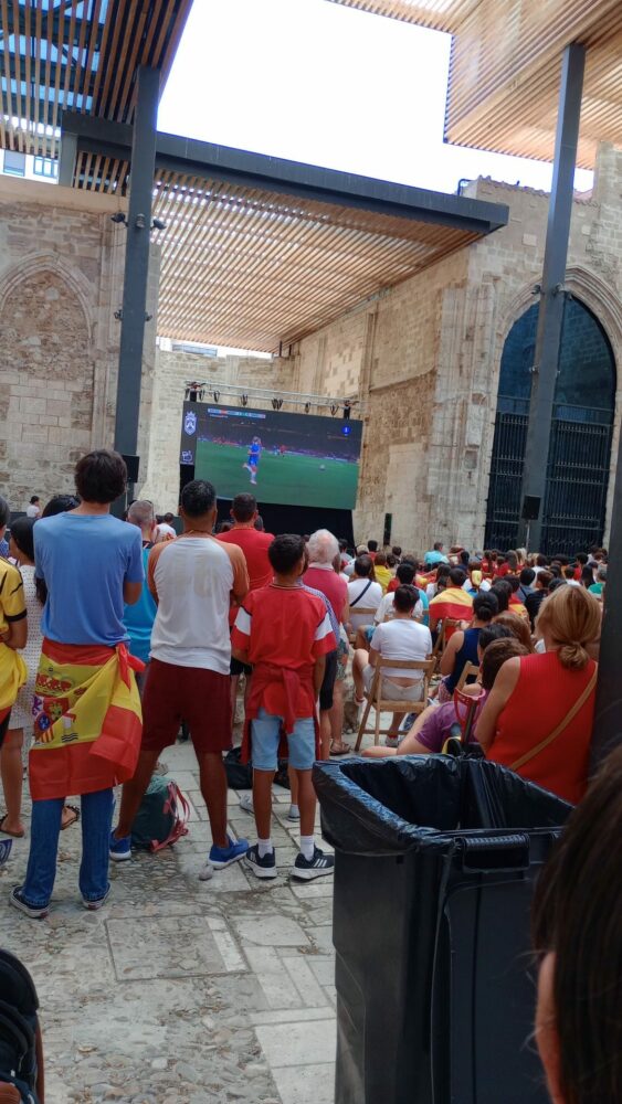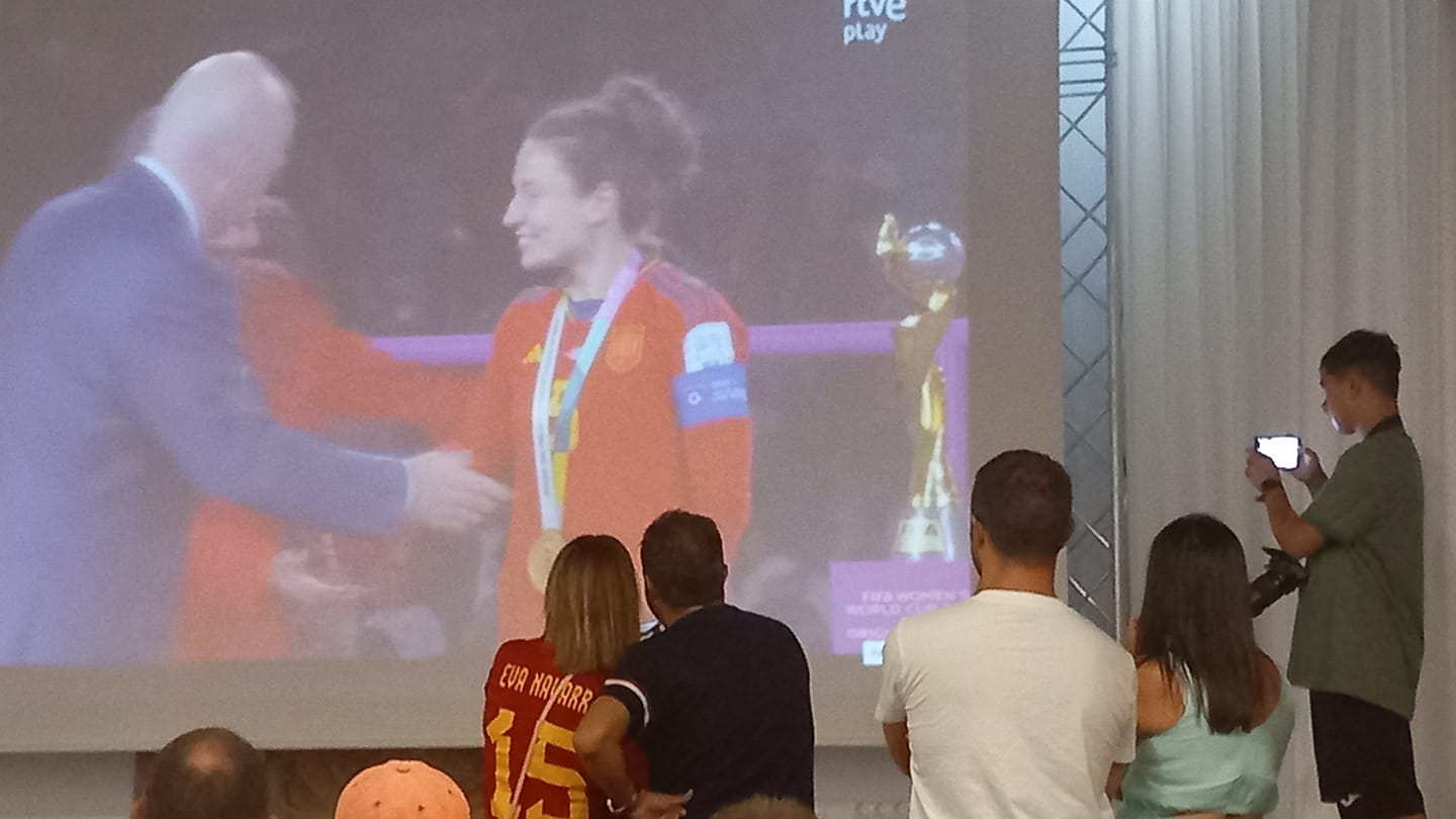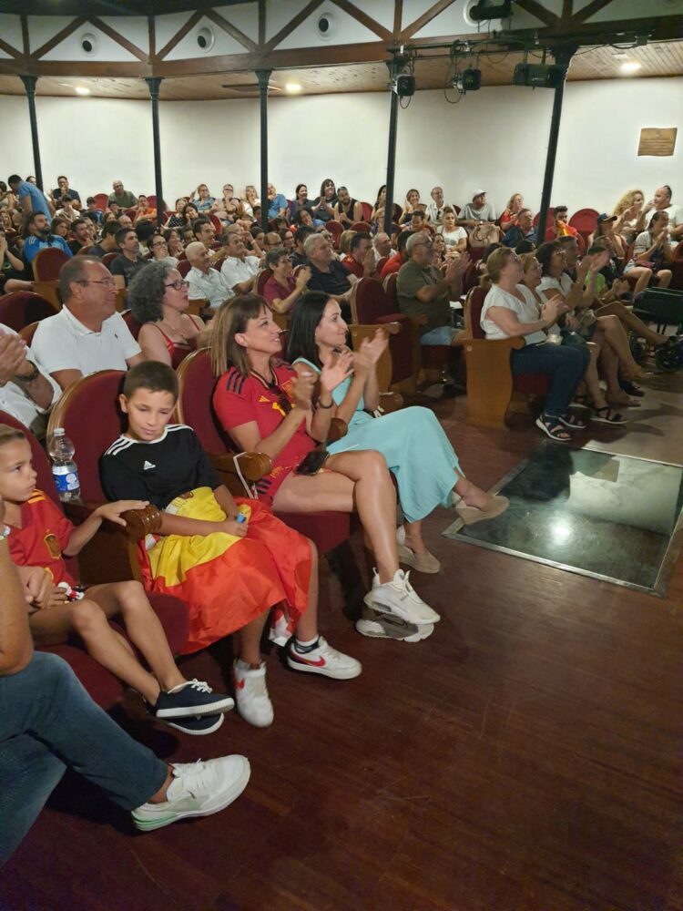El pueblo de Yecla ha respondido a la altura de las expectativas y ha acompañado a Eva Navarro y a la selección en la histórica final del mundial. En el Auditorio Municipal, más de 300 personas se dieron cita para ver en directo y en pantalla gigante la victoria de España ante Inglaterra. Fue la única pantalla que se colocó en toda la Región de Murcia, lo que levantó la curiosidad de diferentes medios autonómicos, que no dudaron en acercarse a nuestra ciudad para seguir desde ahí el partido.