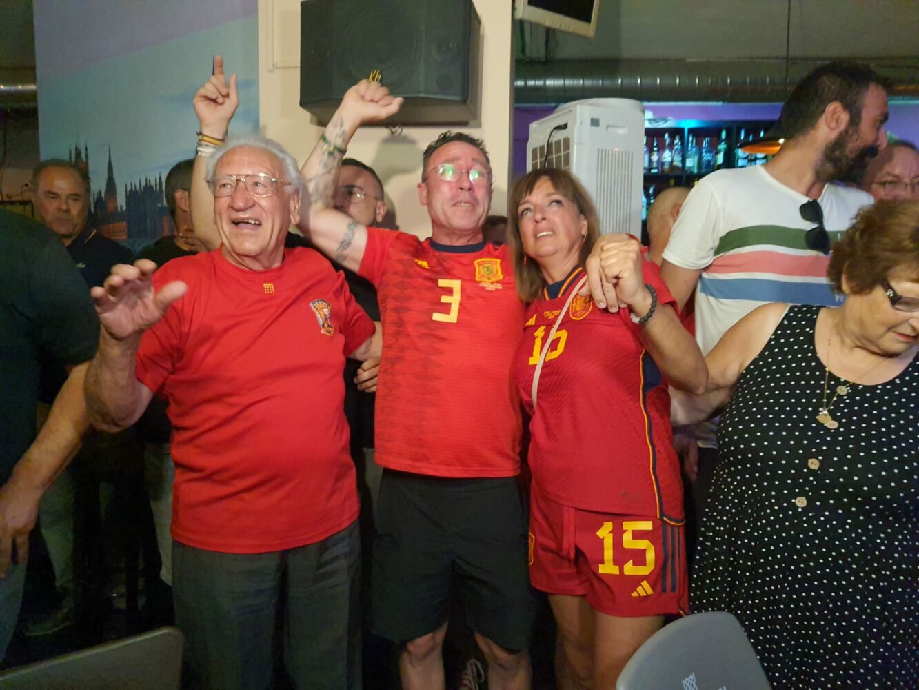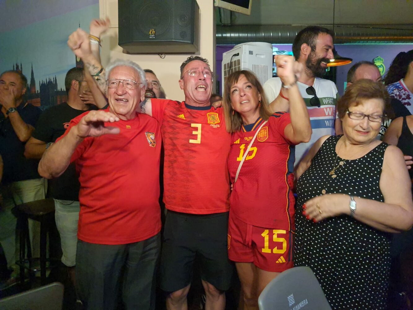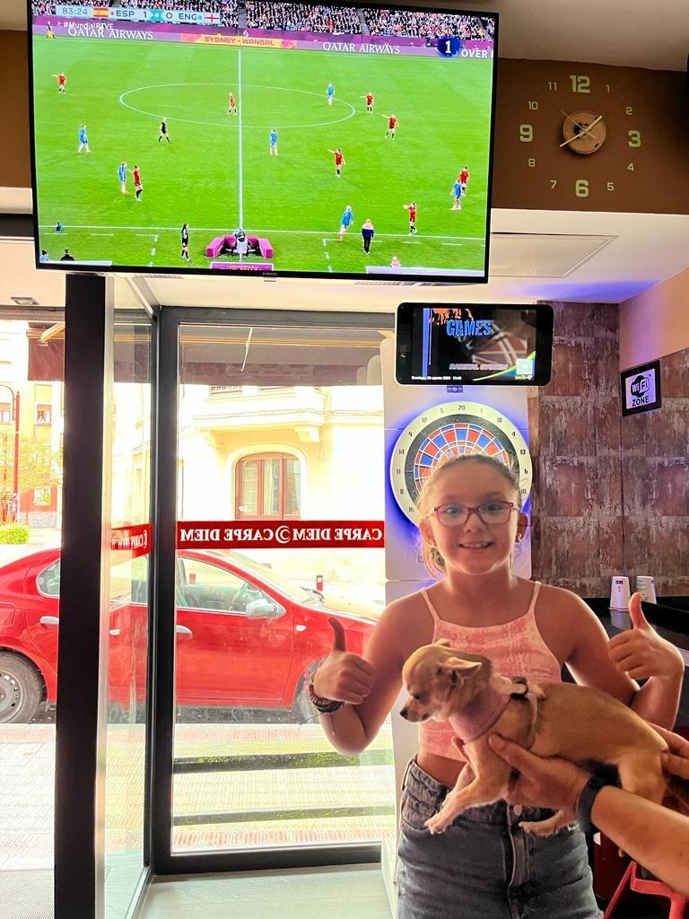 Otros muchos vecinos y, especialmente, familiares y amigos de Eva Navarro se dieron cita en la cafetería Quimera, situado en la calle Pío Baroja, un lugar que en los últimos años ha servido de talismán para la futbolista yeclana. Es ese ‘lugar especial’ donde a los padres de Eva les gusta ver las finales. «Todas las hemos visto ahí y siempre hemos ganado», relataba hace unos días en una entrevista para este medio. Y, esta vez, la historia se ha vuelto a repetir.