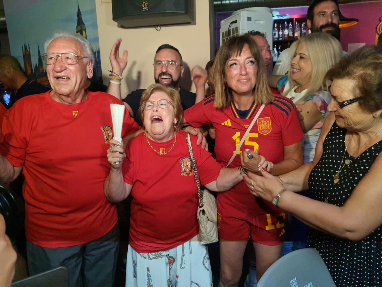 Aun así, decenas de yeclanos y yeclanas han enviado fotos a elperiodicodeyecla.com para contarnos desde dónde estaban siguiendo la final y celebrando posteriormente el triunfo. Muchos han optado por disfrutar del campo y un buen aperitivo para sofocar el calor reinante en la jornada de hoy, pero otros han visto la final desde destinos muy diversos debido a las vacaciones. Desde Socovos hasta Berlín, pasando por Madeira, Bélgica, Benidorm, Suiza, A Coruña o Barakaldo. Todos han querido estar cerca de Eva Navarro y de la selección española en este importante partido donde se han proclamado campeonas del mundo por primera vez en la historia.