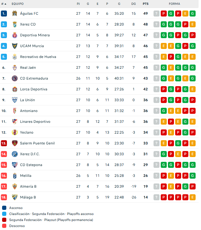 Y la clasificación ya no permite disfrazar la situación. En lo que va de 2026, el equipo ha jugado 11 partidos con un balance de 3 victorias, 1 empate y 7 derrotas. Una secuencia muy pobre que ha empujado a los azulgranas hasta quedarse a un punto del play out y a tres del descenso directo a Tercera RFEF. La crisis ya no es una mala tarde ni un bache puntual. Es una tendencia.